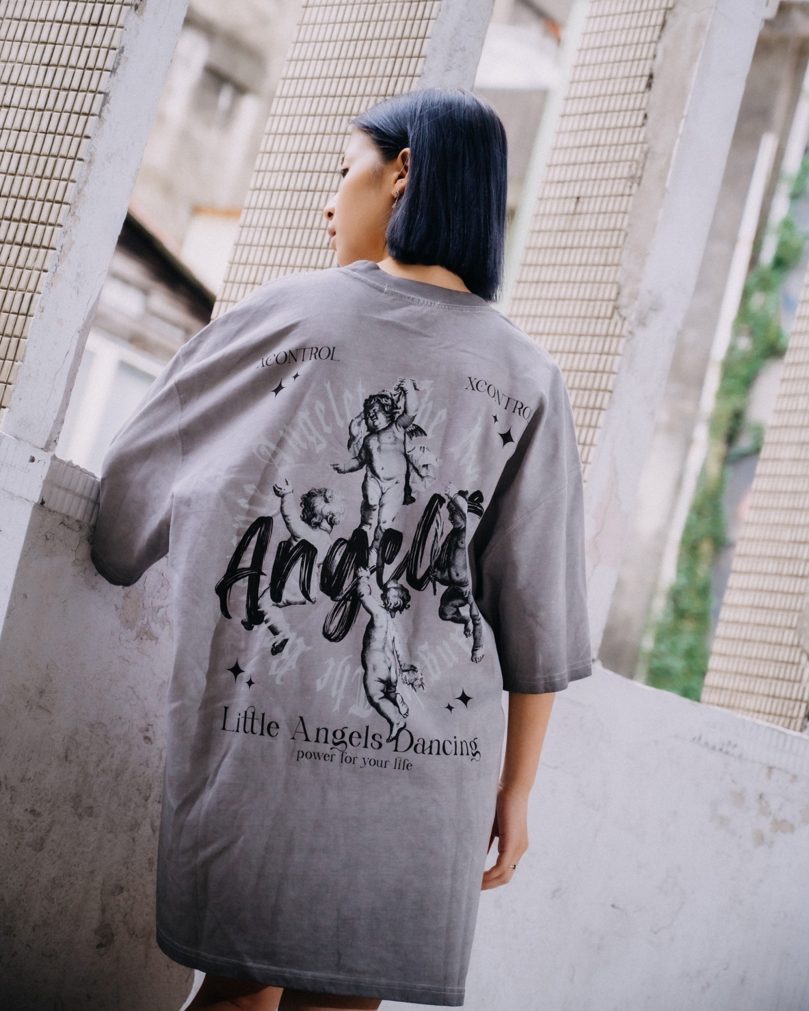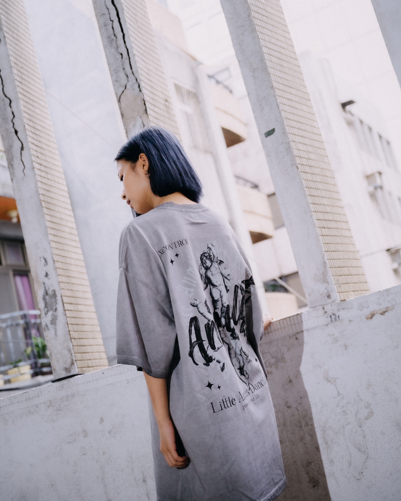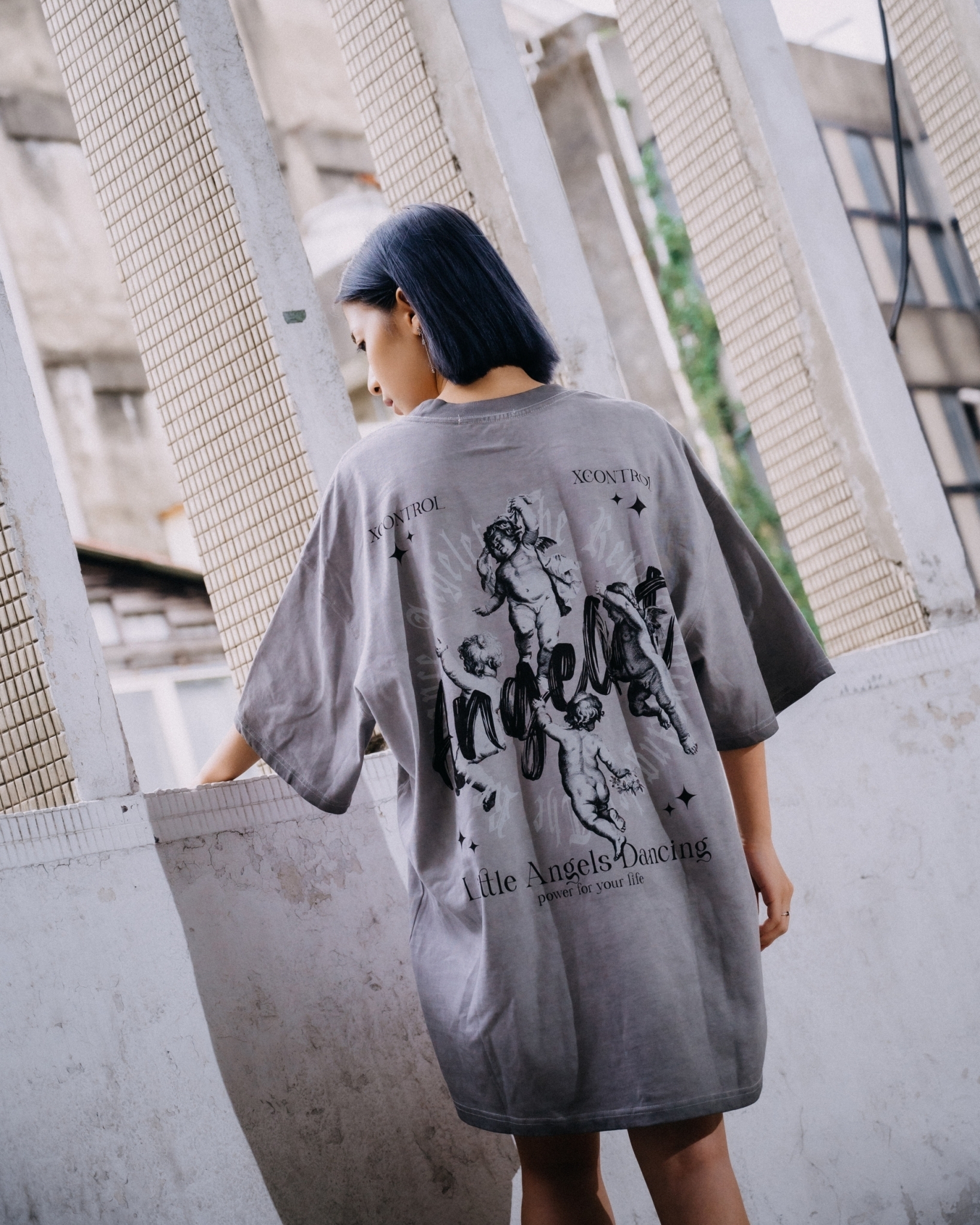 24 S/S  XCTRL 小天使飛舞水洗短T-淺灰