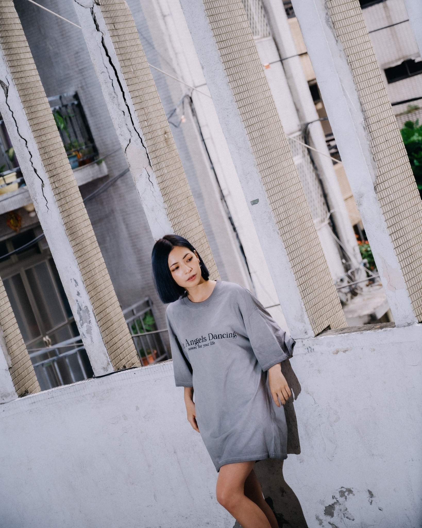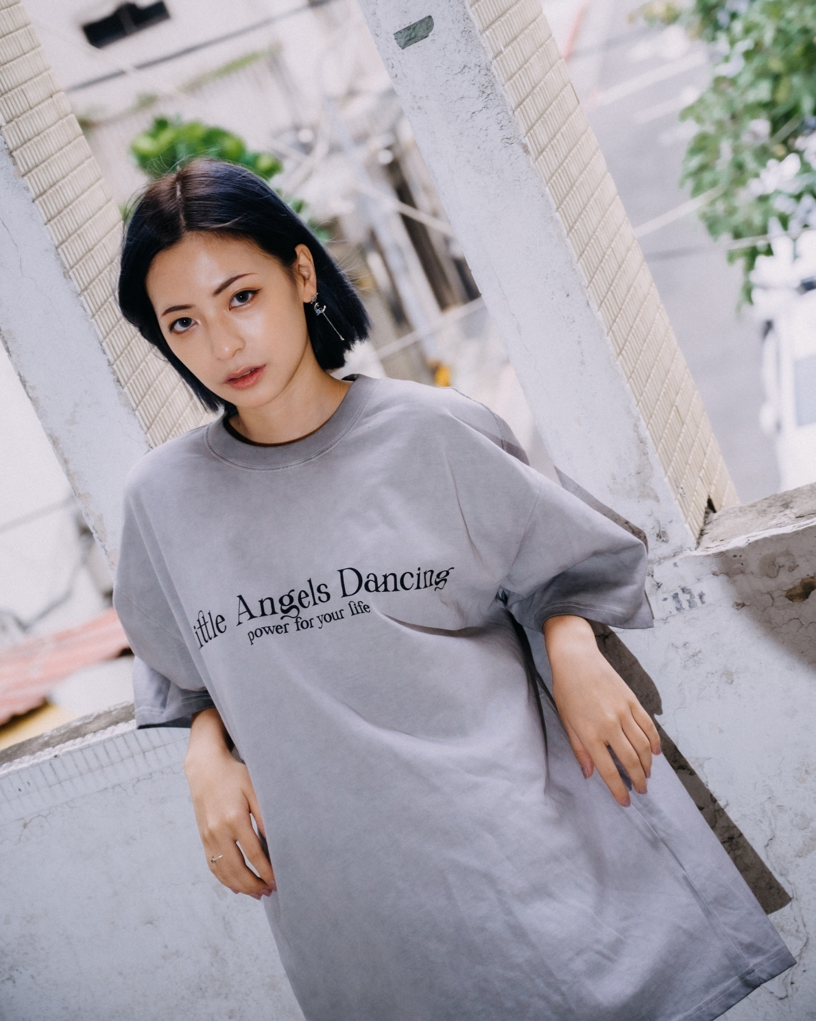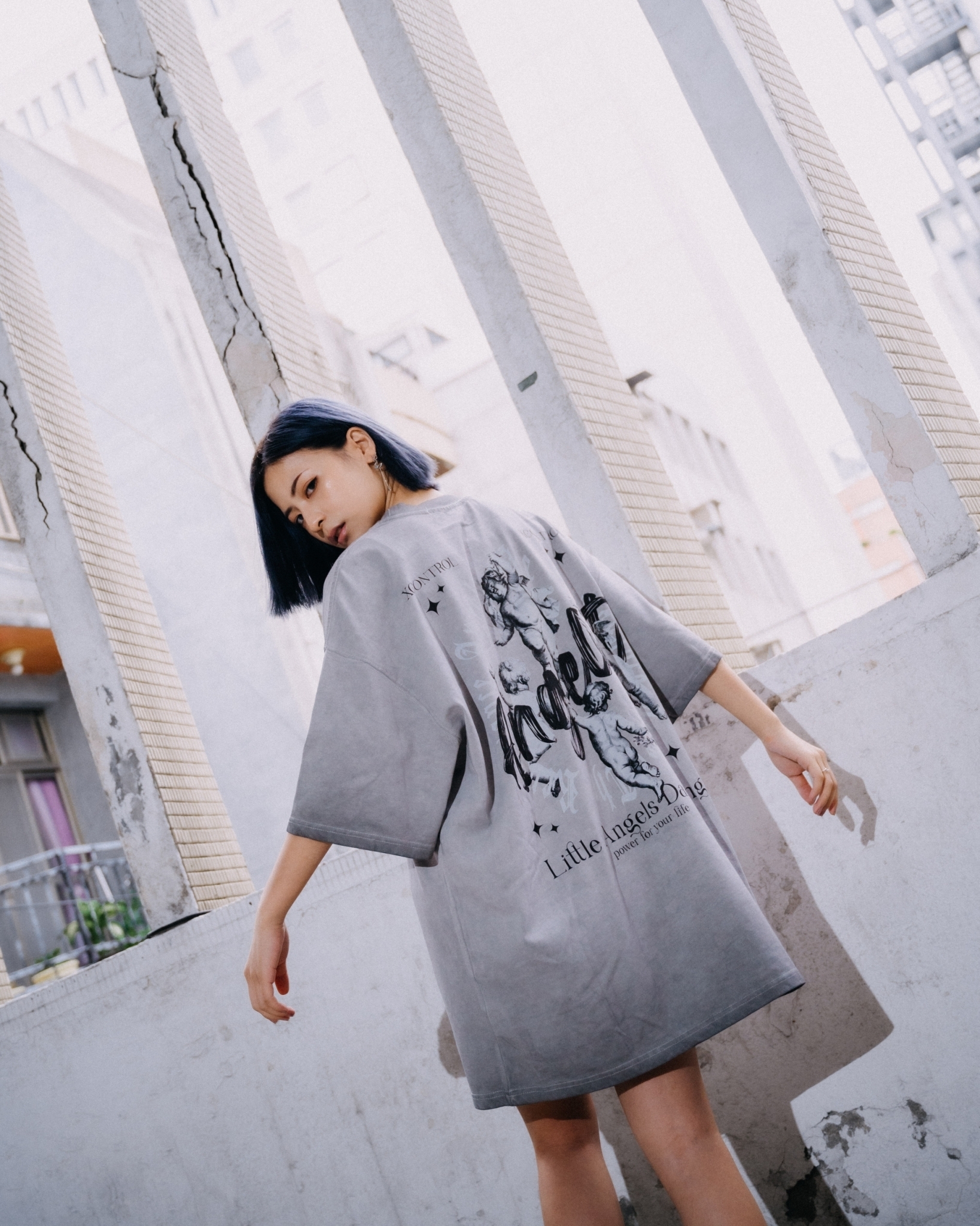 24 S/S  XCTRL 小天使飛舞水洗短T-淺灰