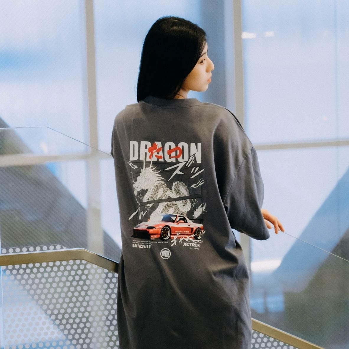 24 S/S  XCTRL 日漫分格龍系跑車短T-灰藍