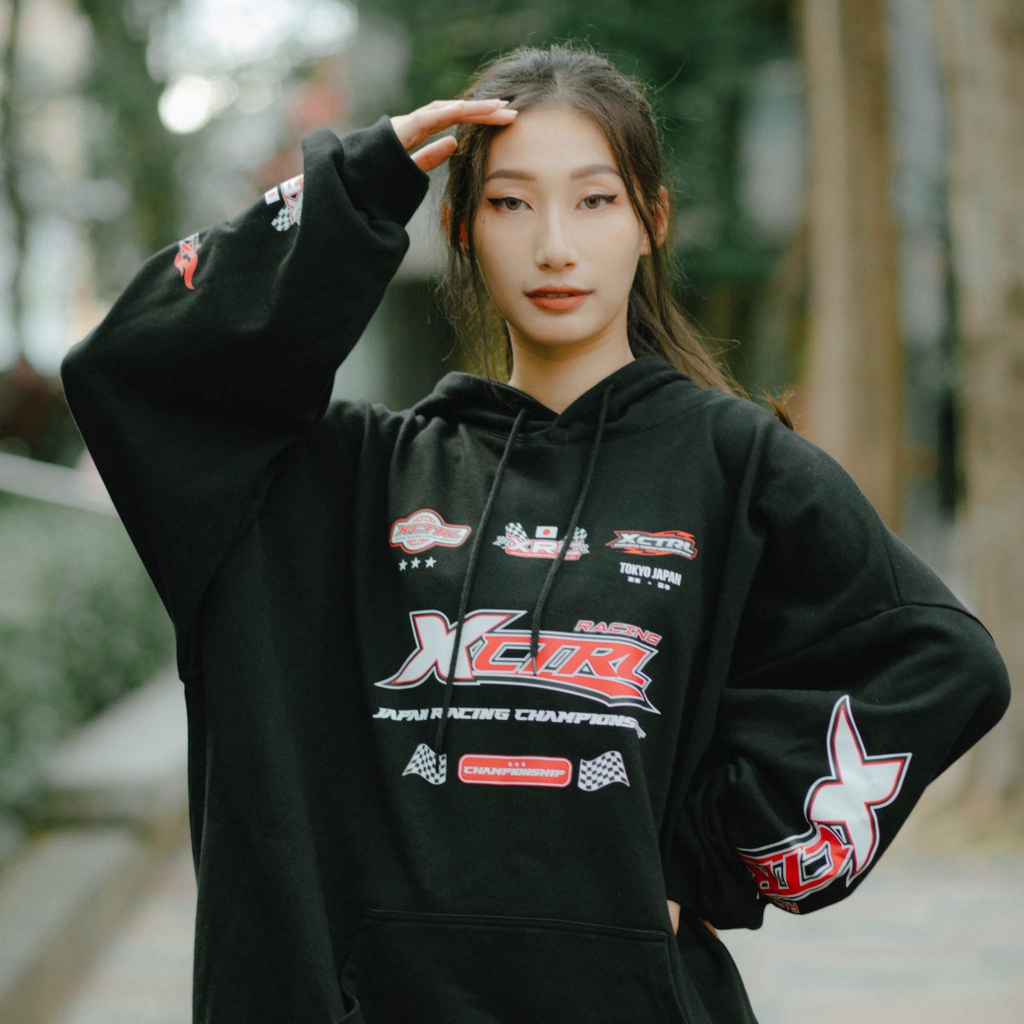 XCTRL 東京賽車冠軍寬版帽T-黑