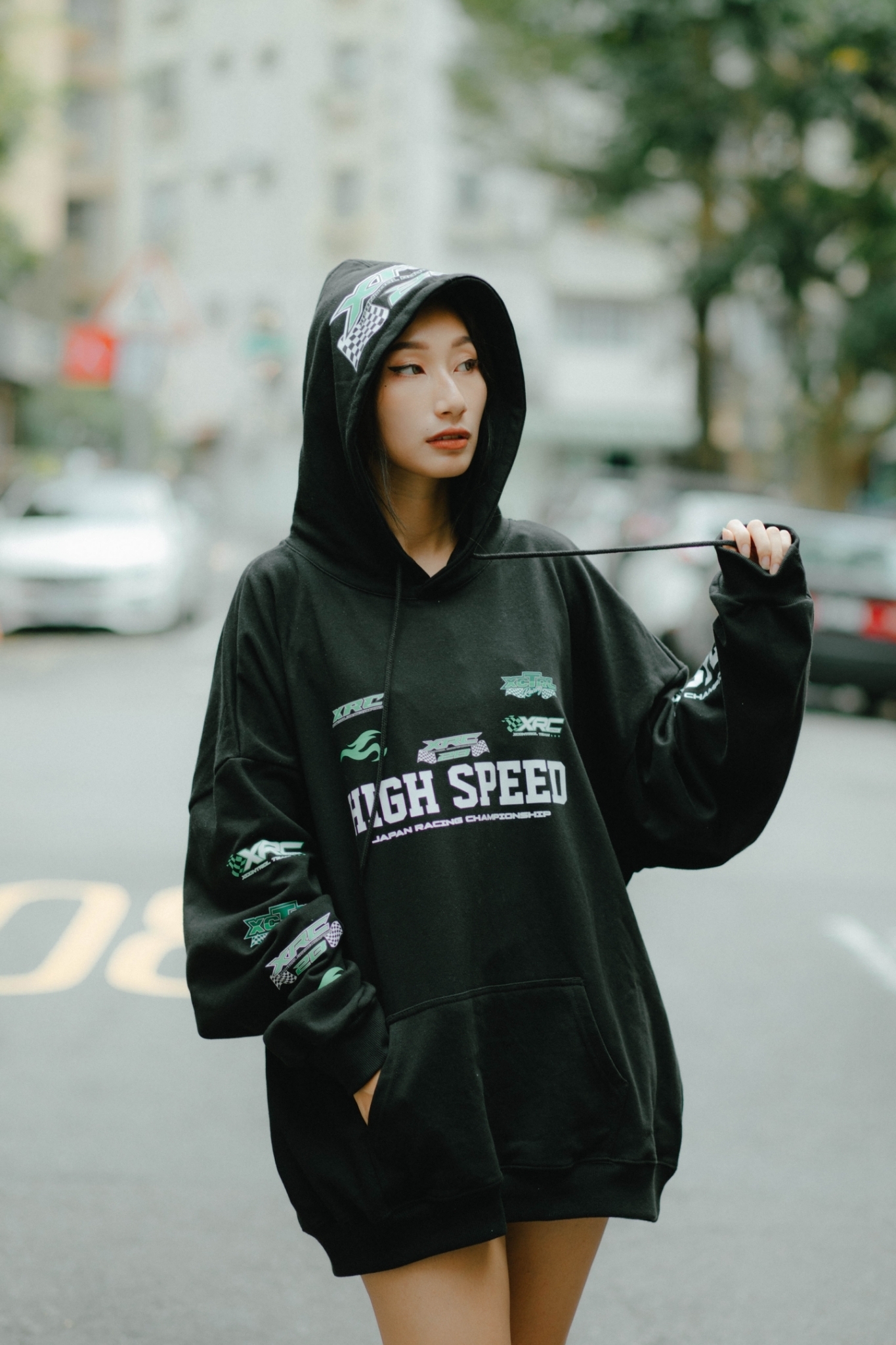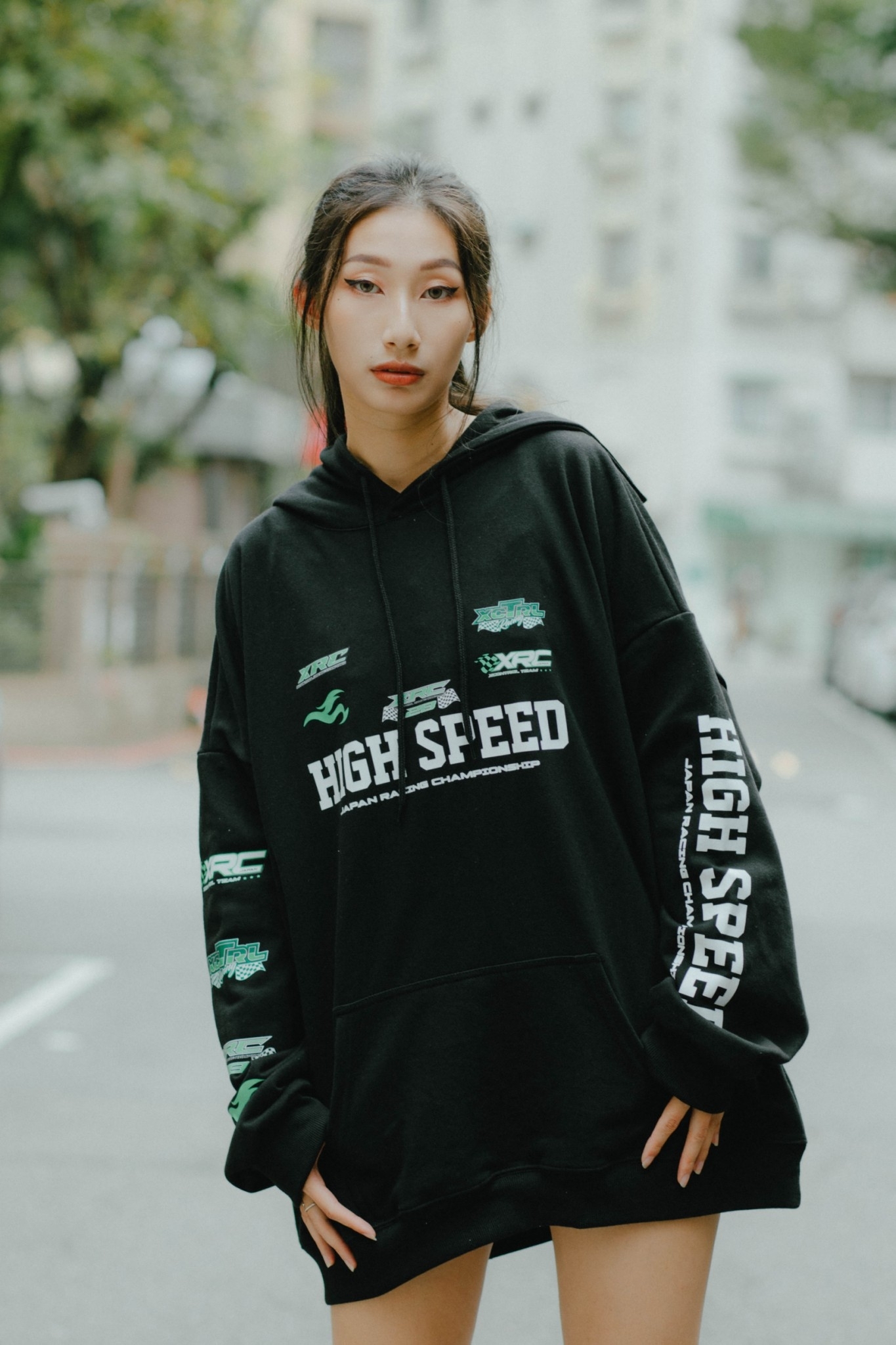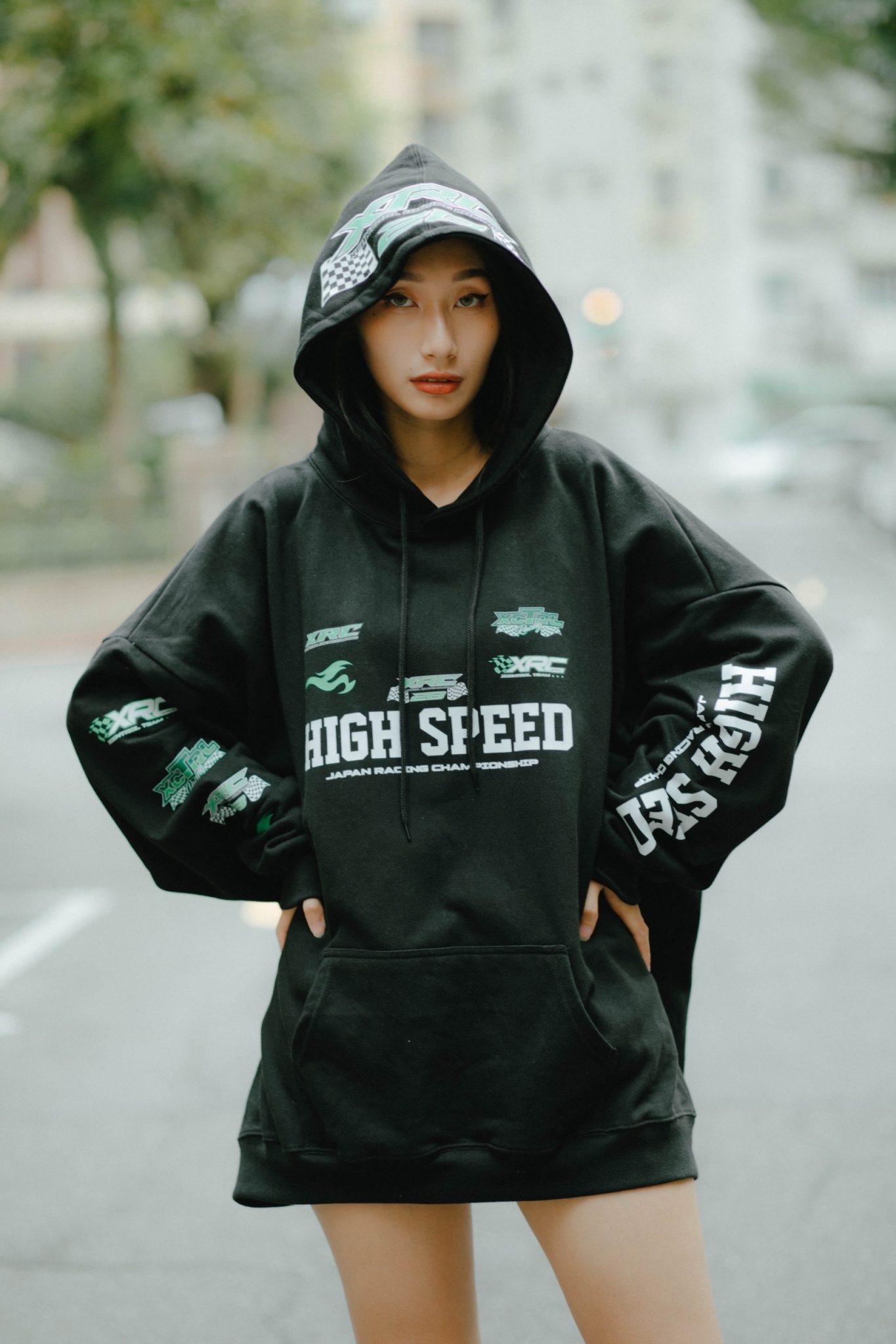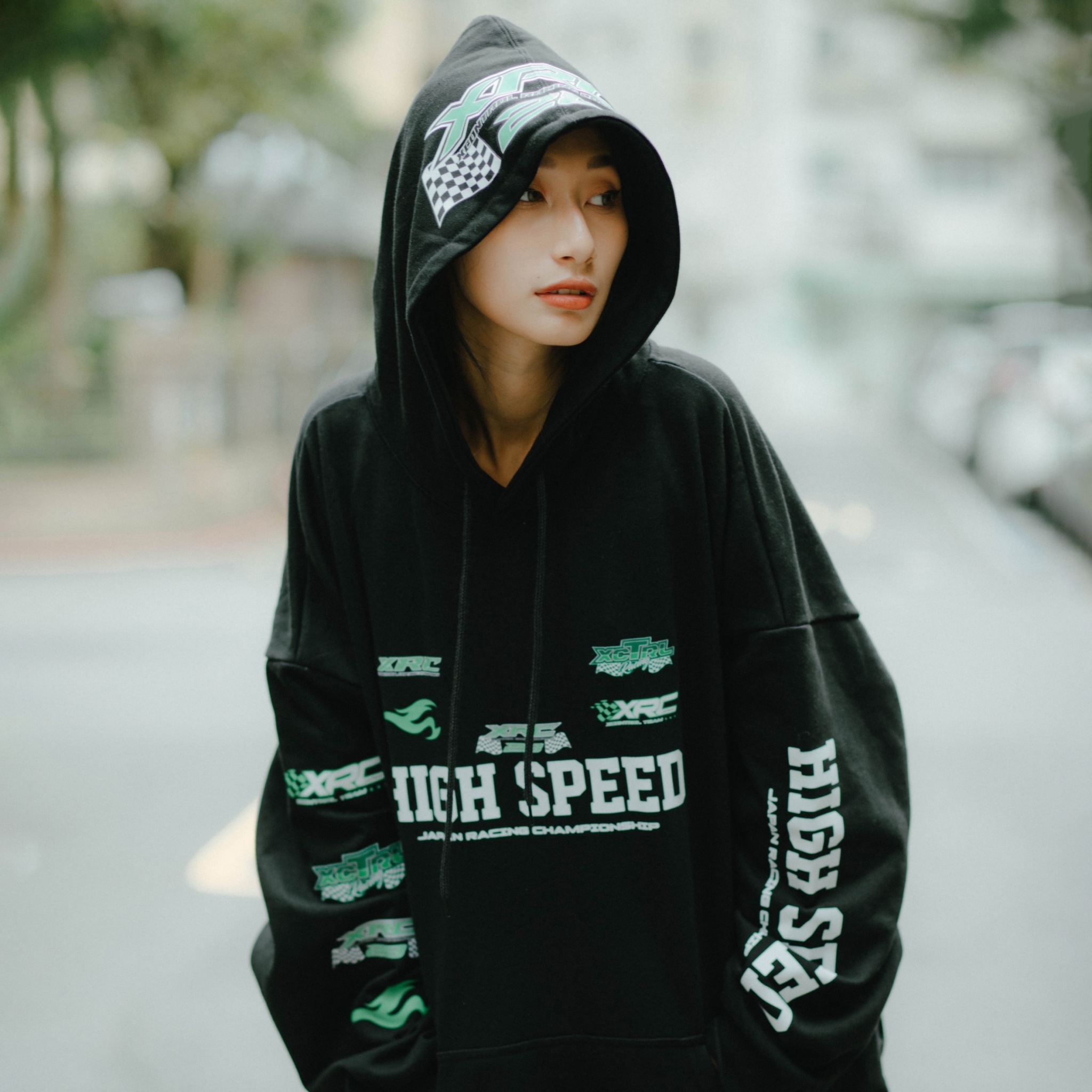 品名:XCTRL 高速賽車寬版帽T-黑