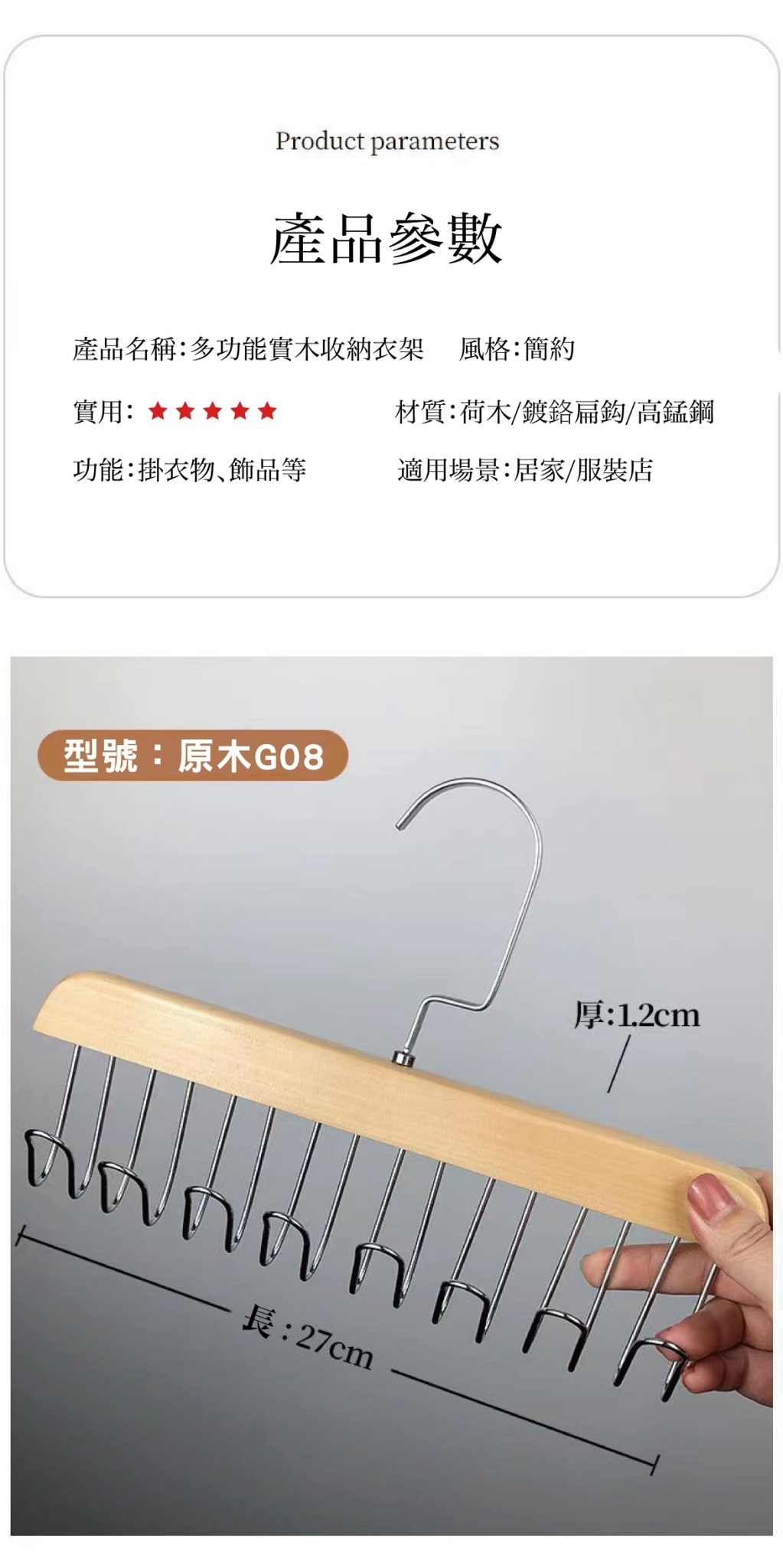 品名:多功能實木收納衣架