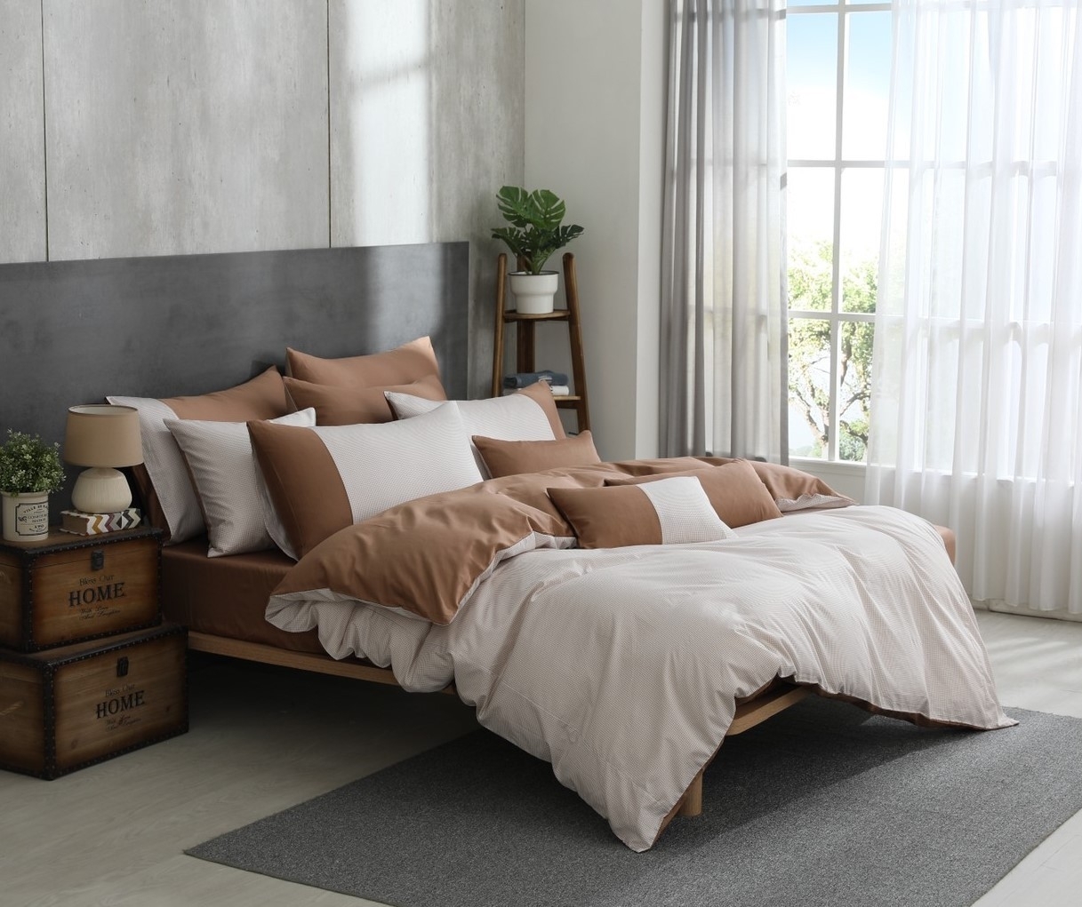 纯棉床包組-初心暖心棕(60支純棉-300織)