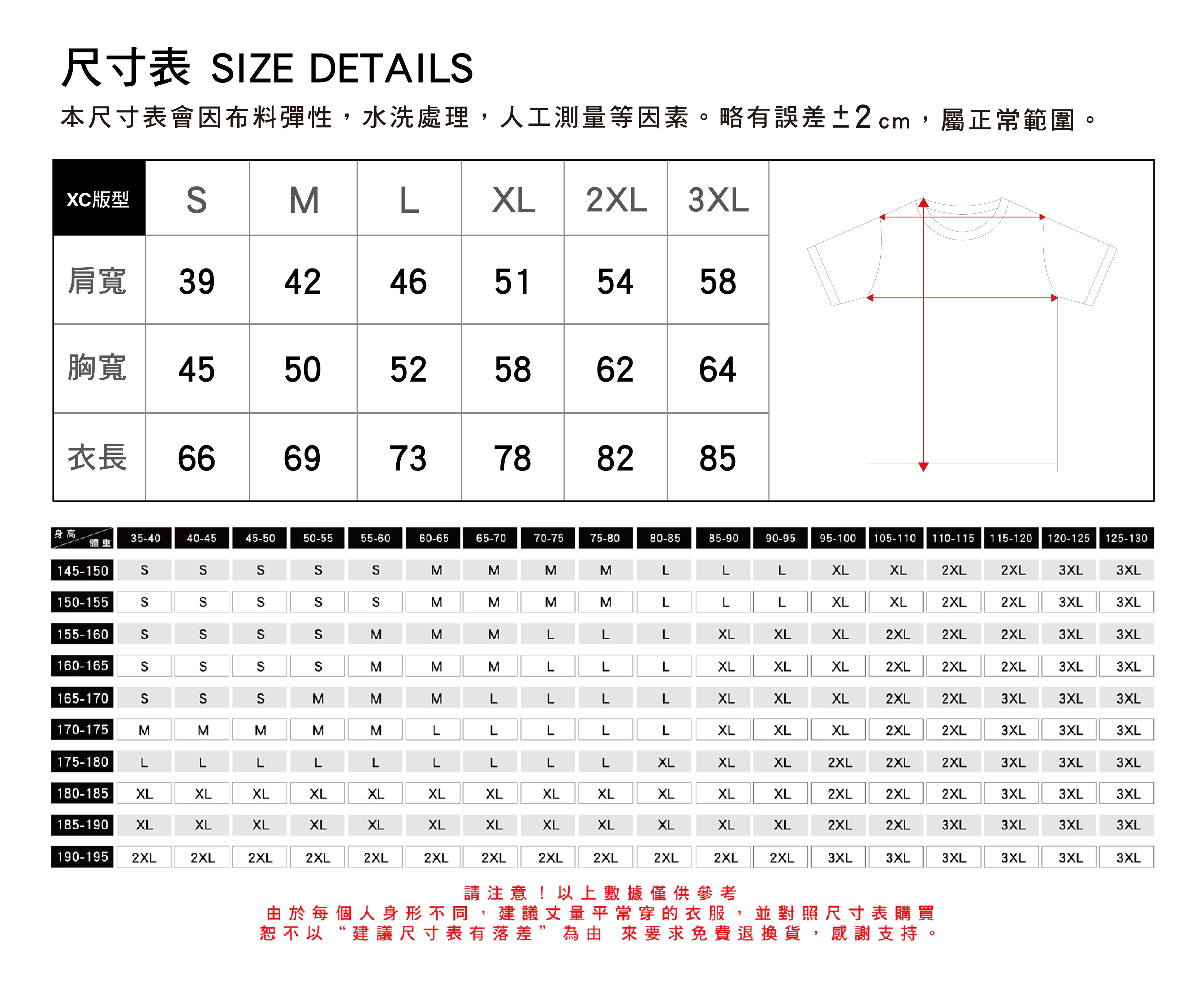 尺寸:XC  S ~ 3XL