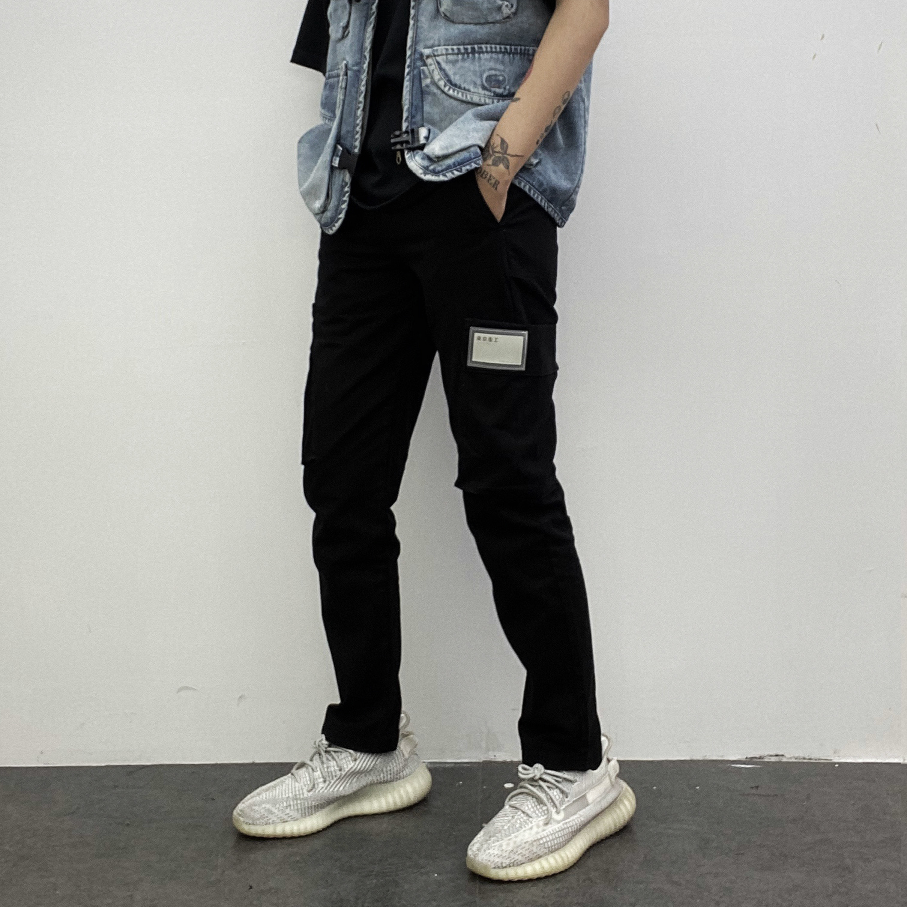 XCTRL 立體大口袋拼接工作褲-黑