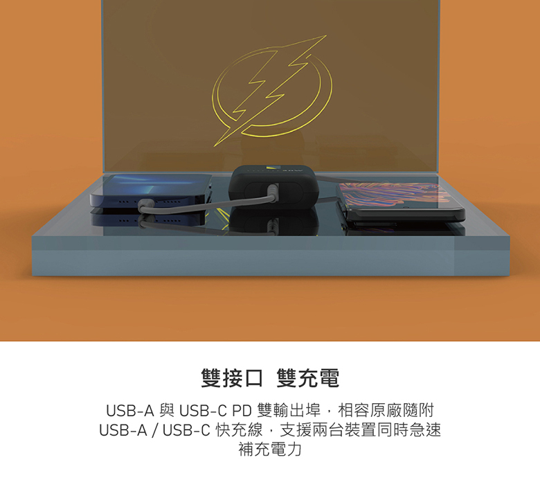 ●雙充電孔 USB-A、USB-C
