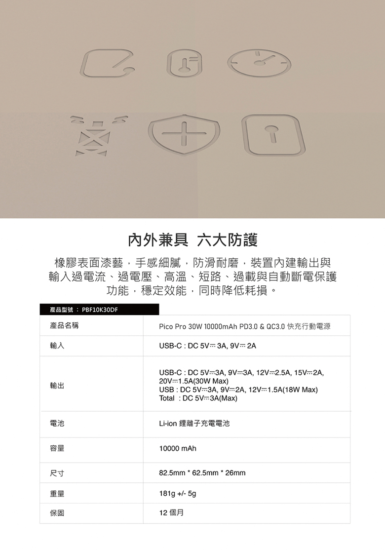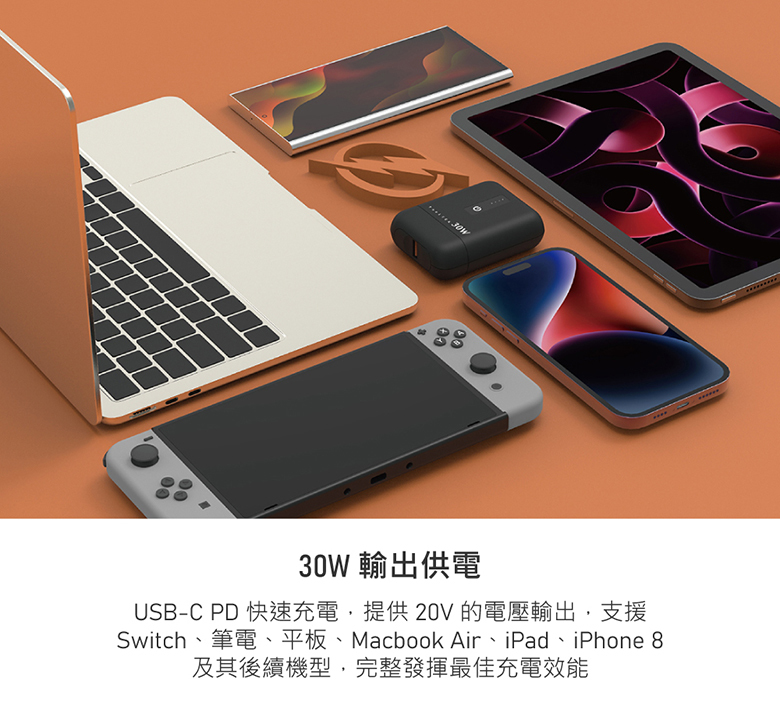 ●USB-C PD快充,30W輸出供電