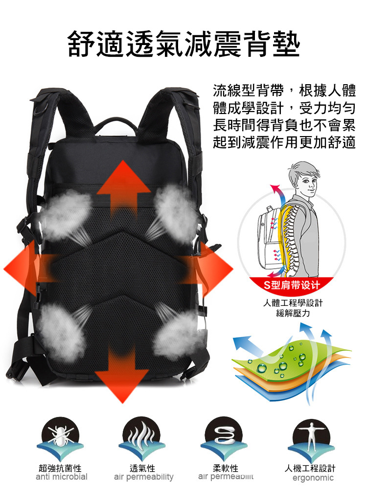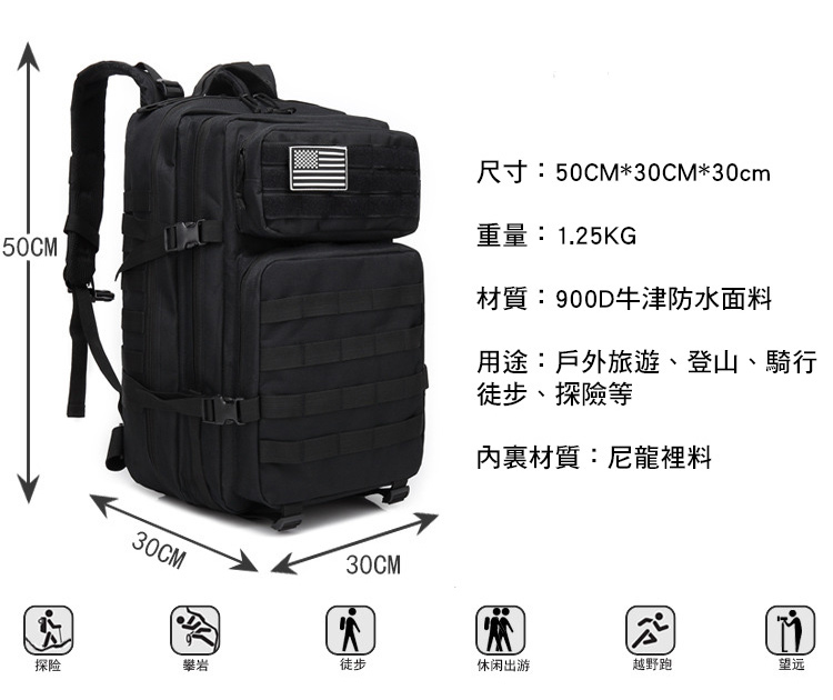軍迷戰術迷彩背包- 黑 卡其 綠 (三色)