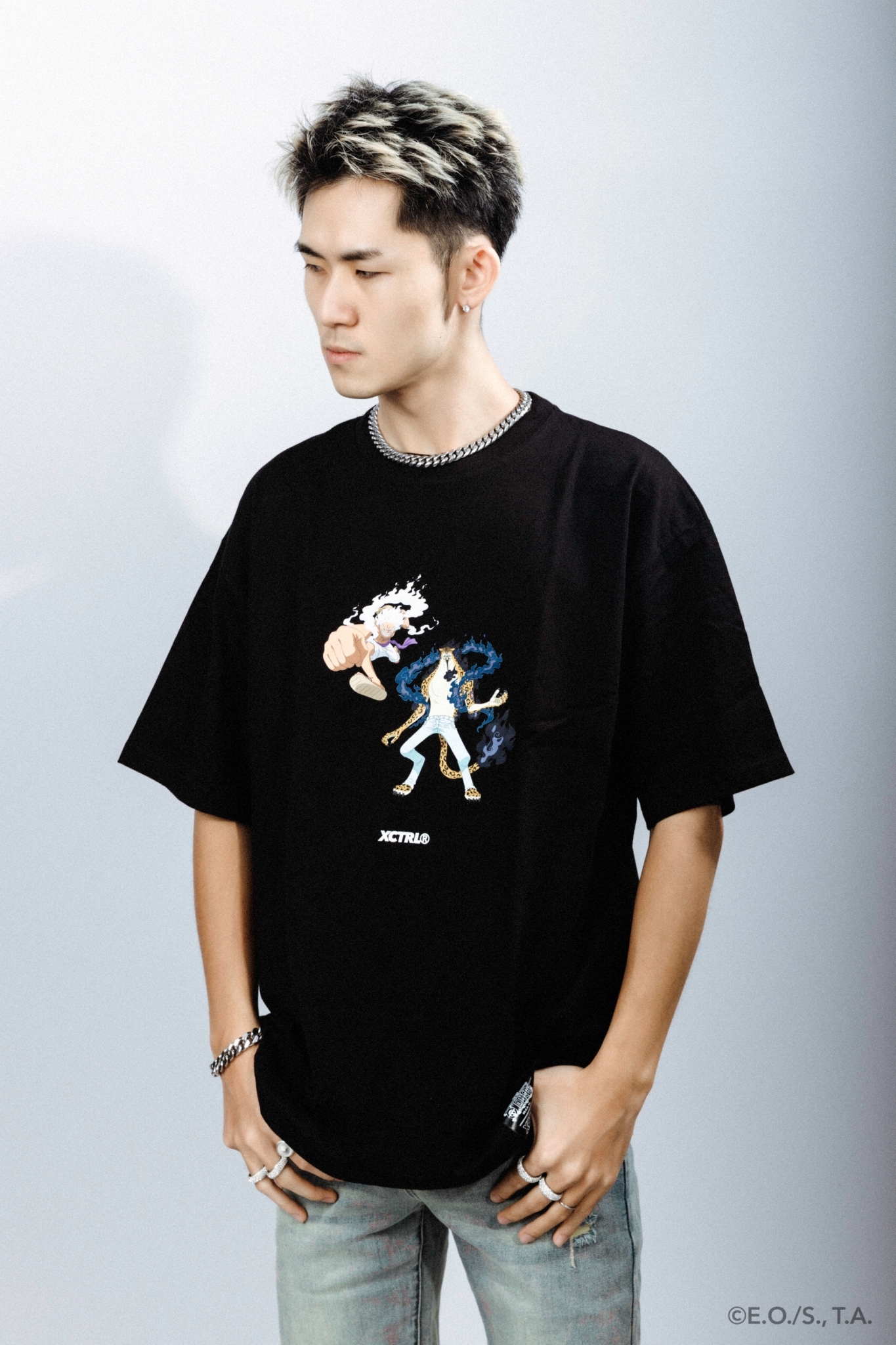 品名:XCTRL® x 航海王 尼卡&羅布·路基寬版短T-黑