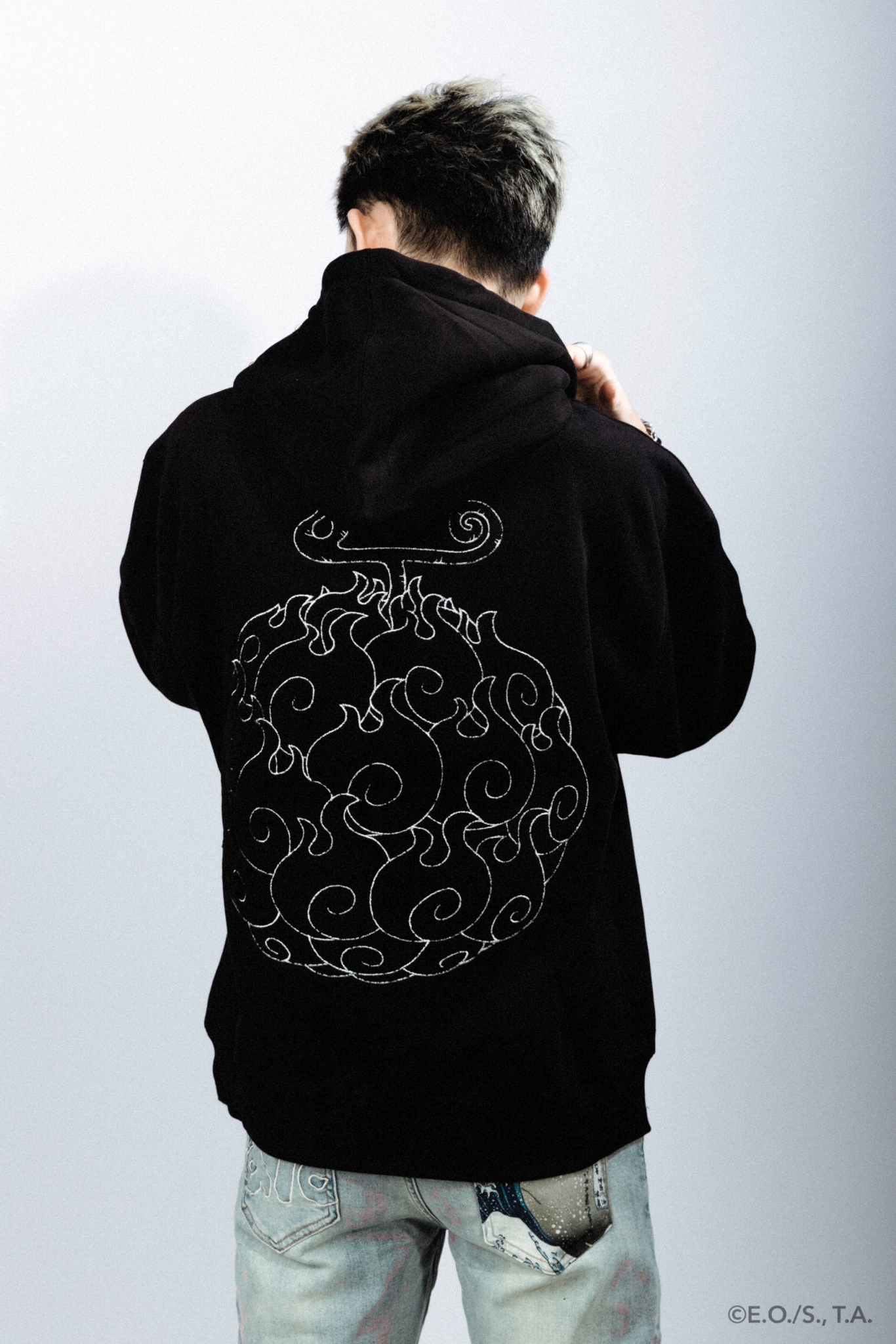 品名:XCTRL® x 航海王 火焰果實寬版帽T-黑