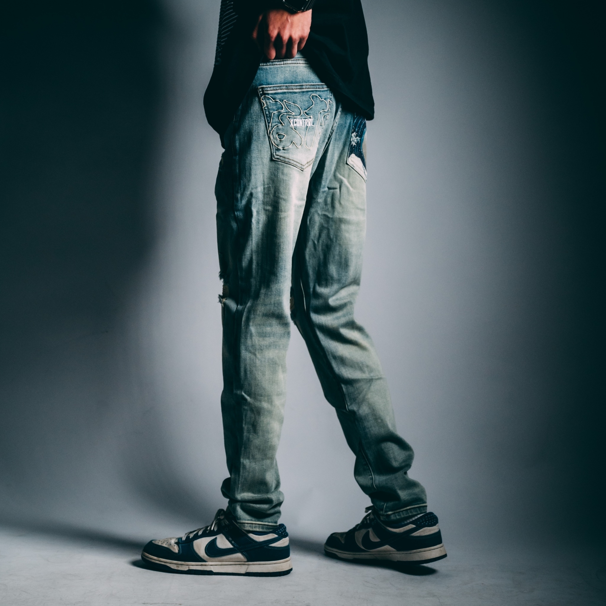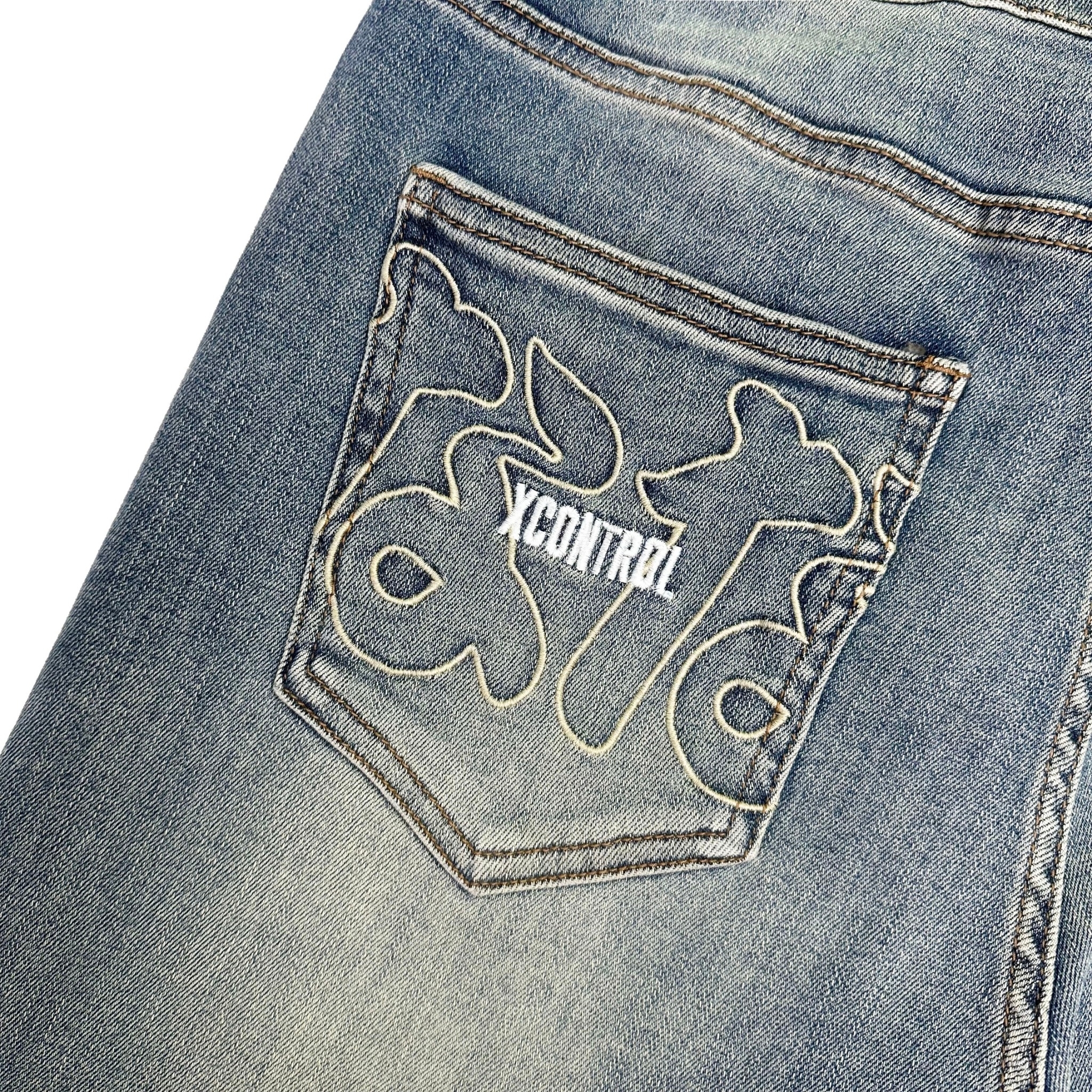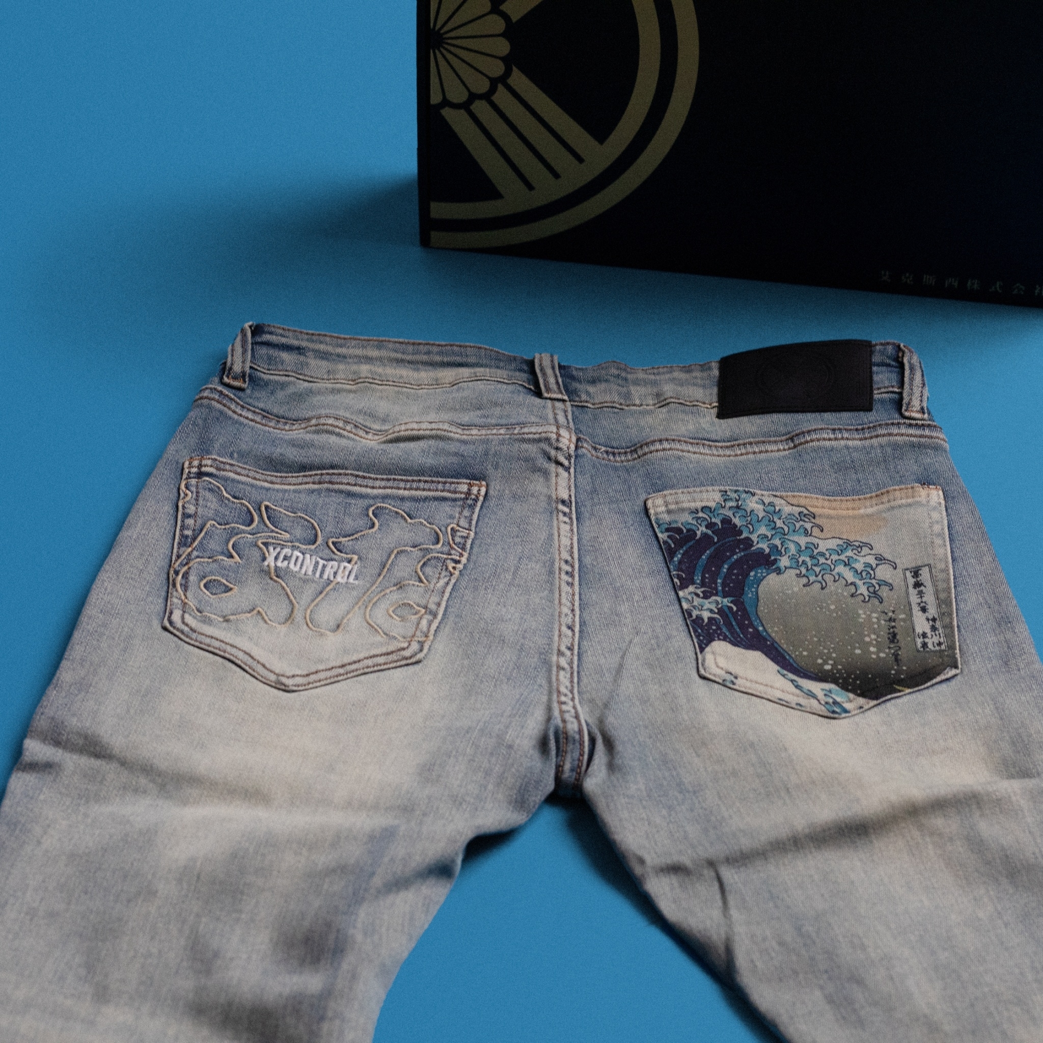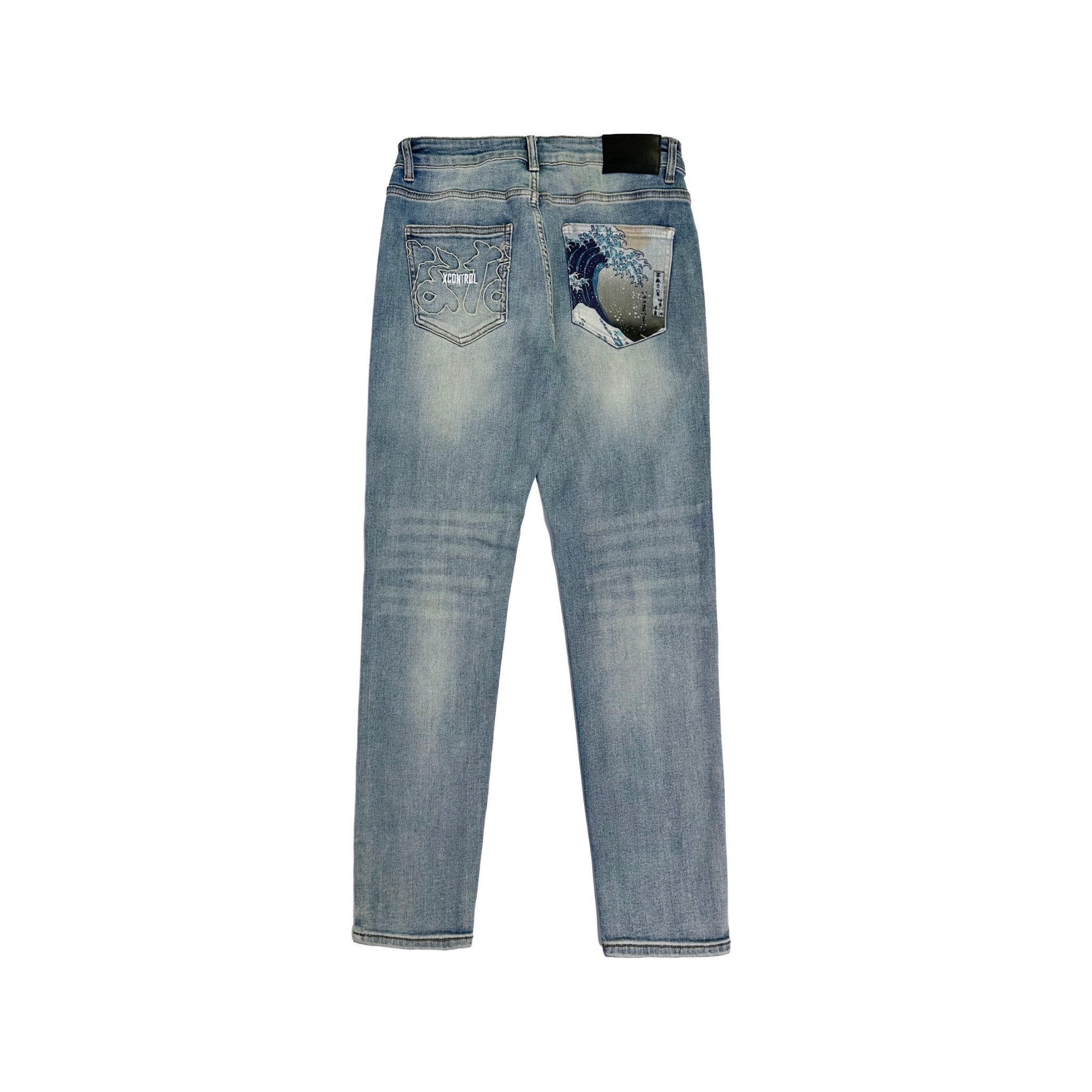 XCTRL 七週年神奈川沖浪裏破壞牛仔褲-淺藍
