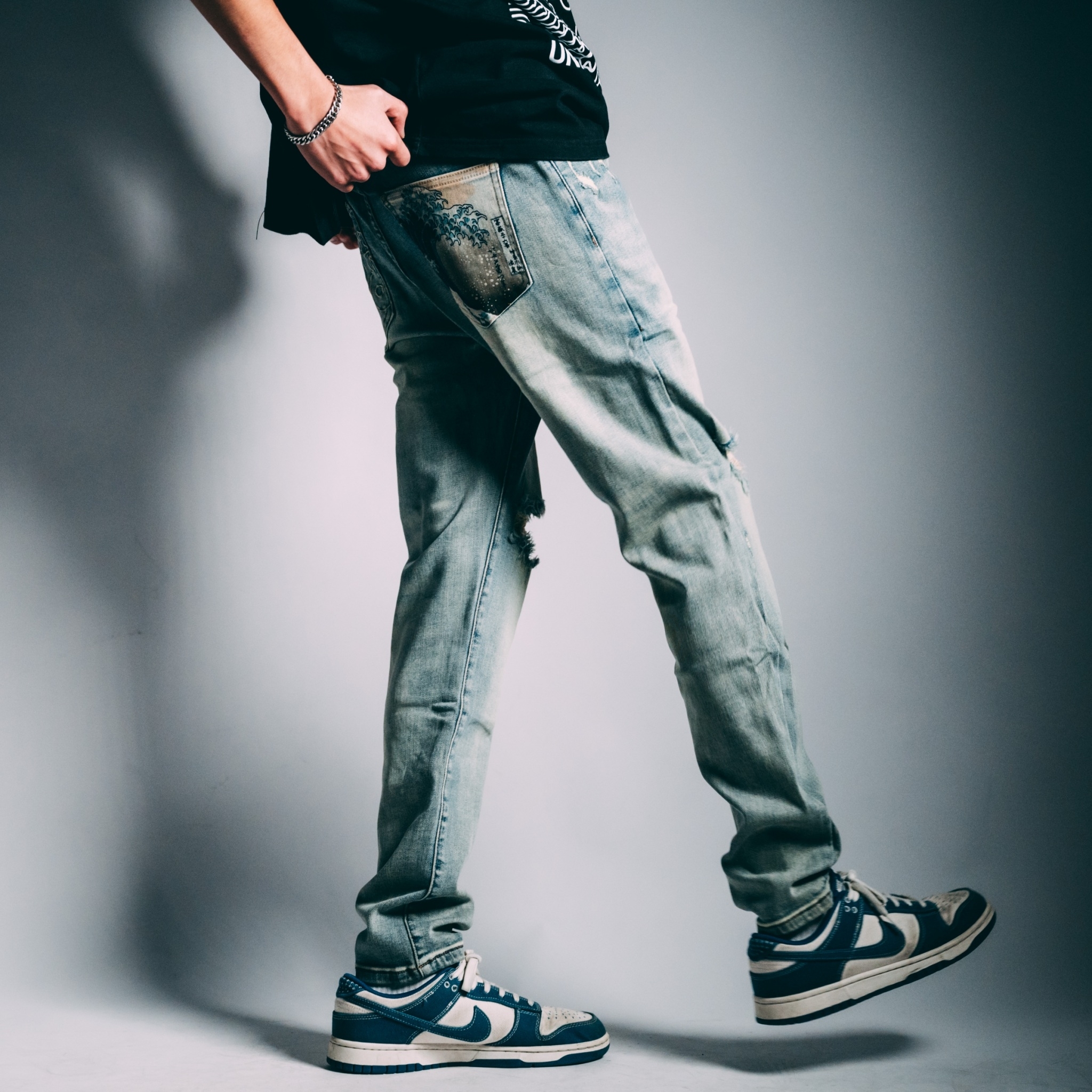 七週年神奈川沖浪裏破壞牛仔褲