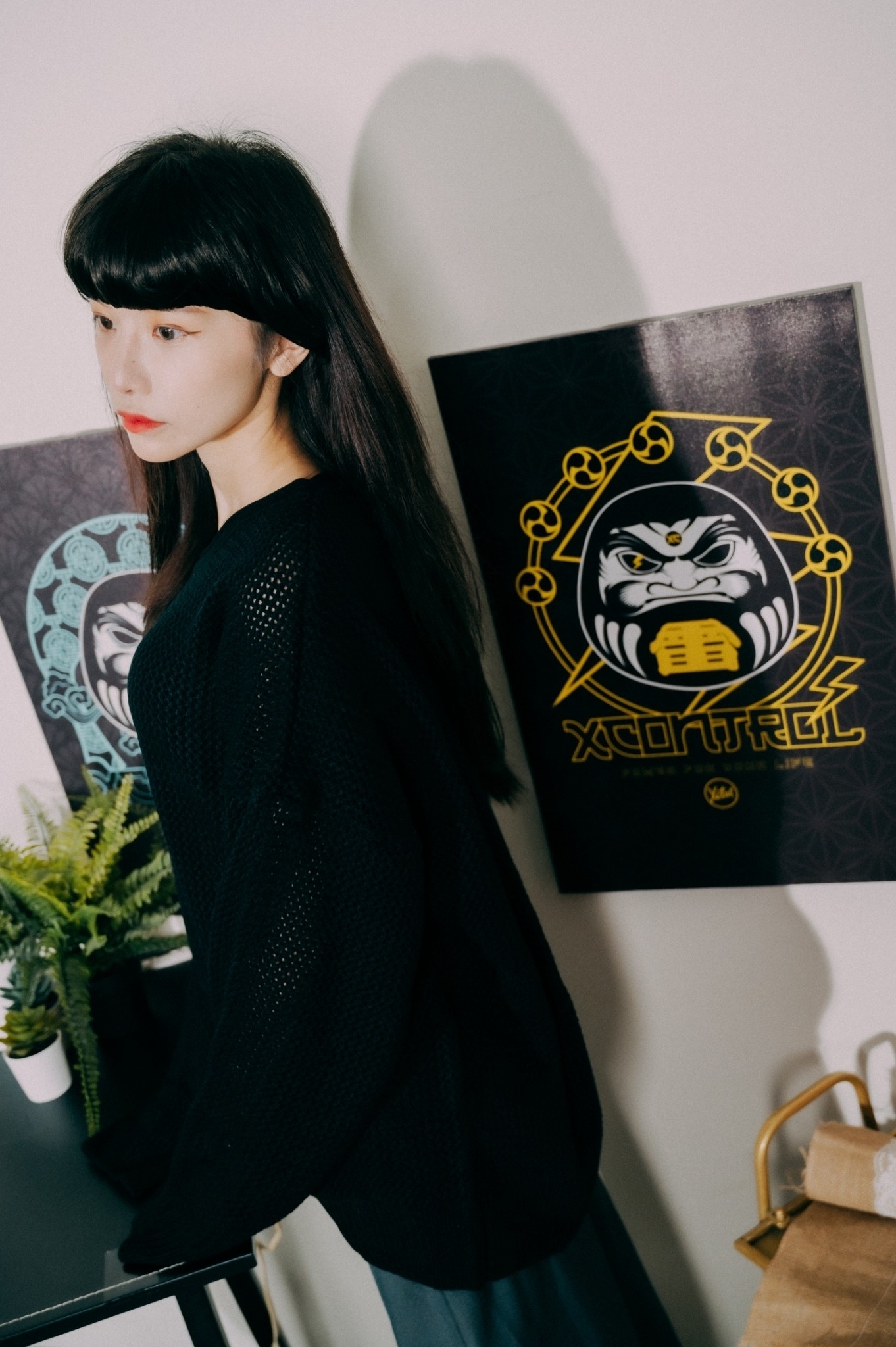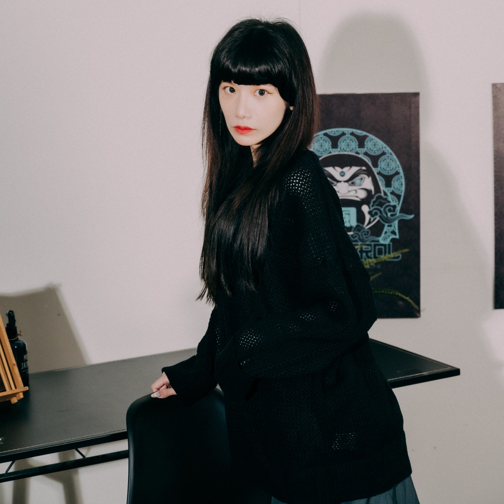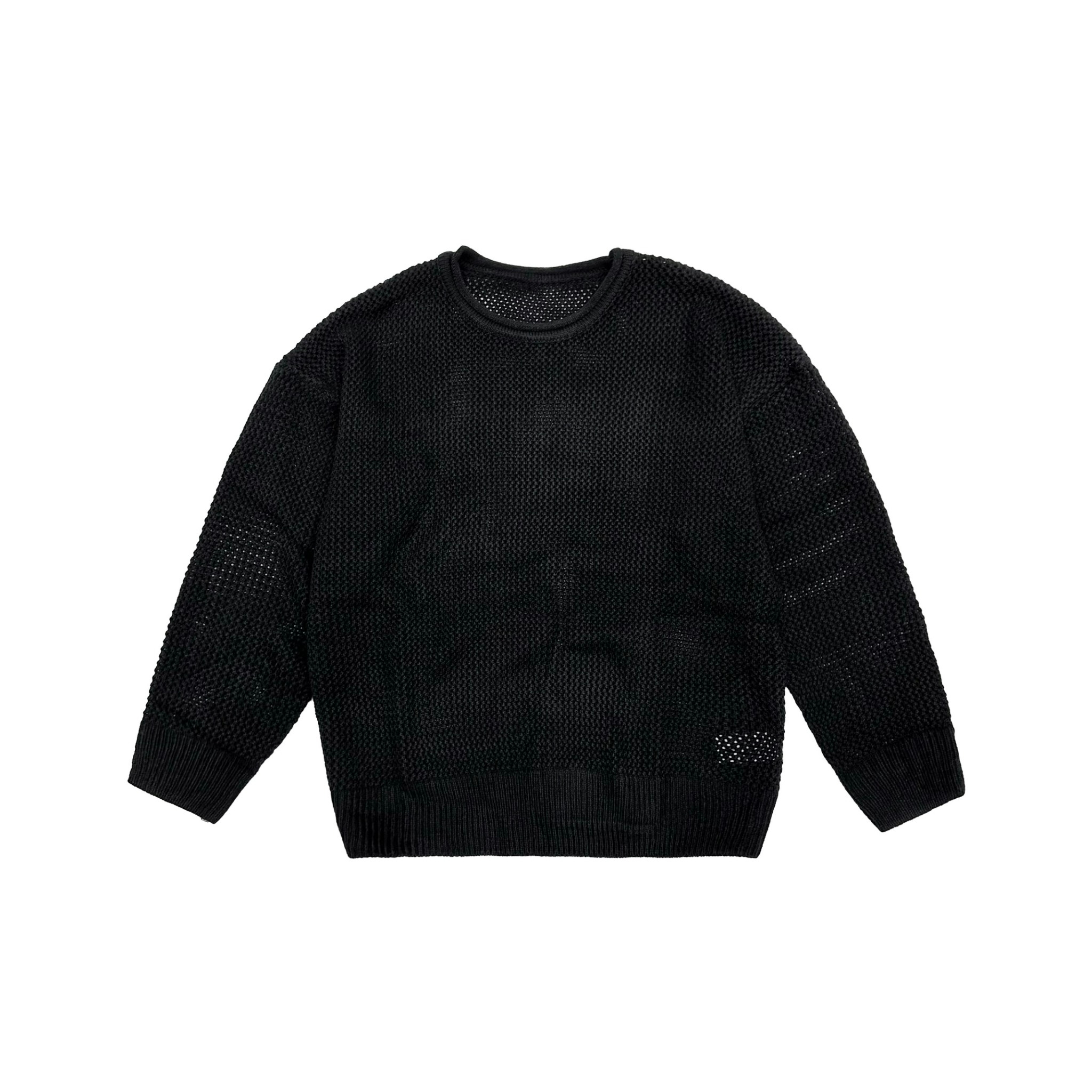 品名:XCTRL 編織洞洞落肩長袖毛衣-黑