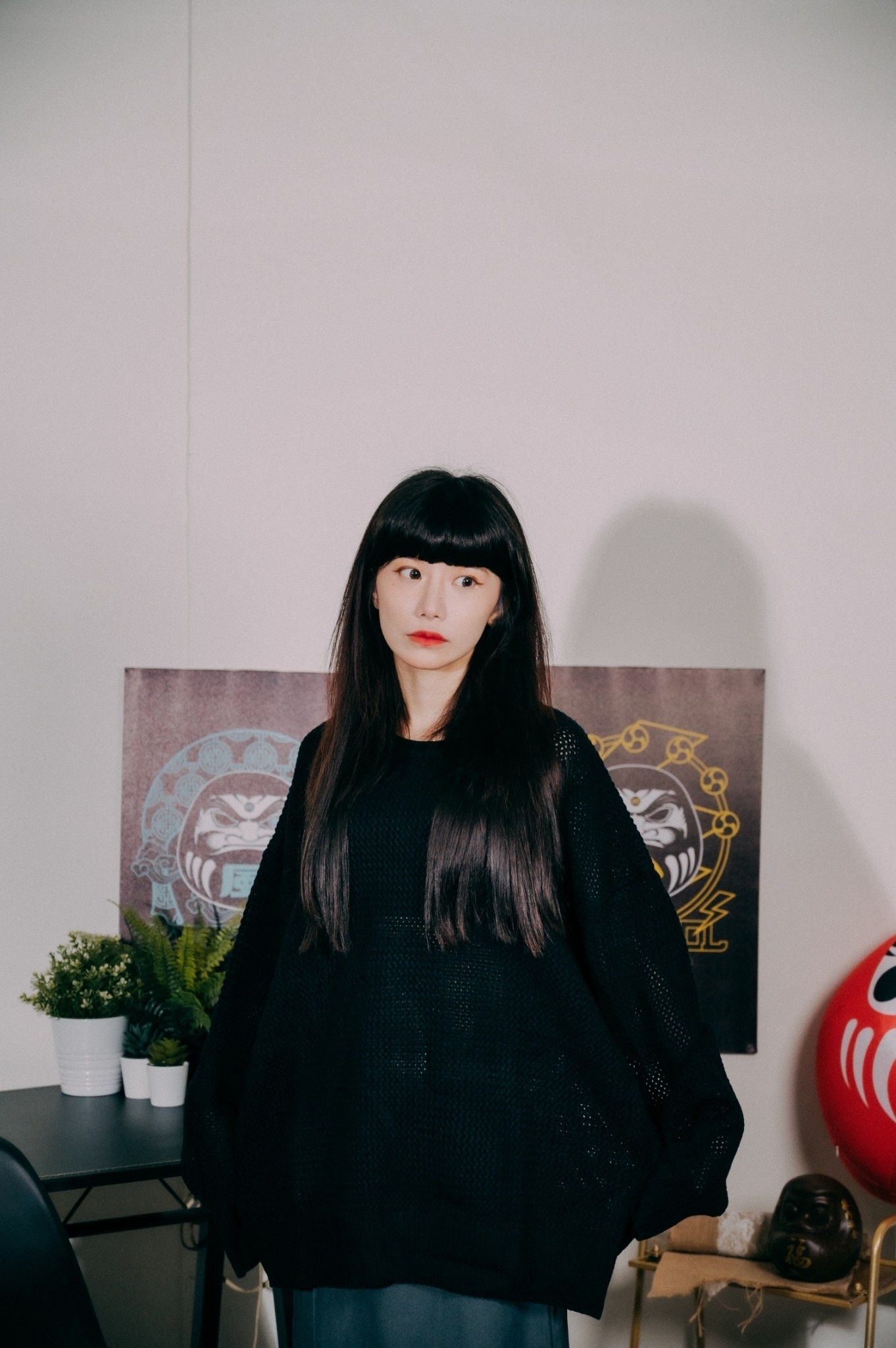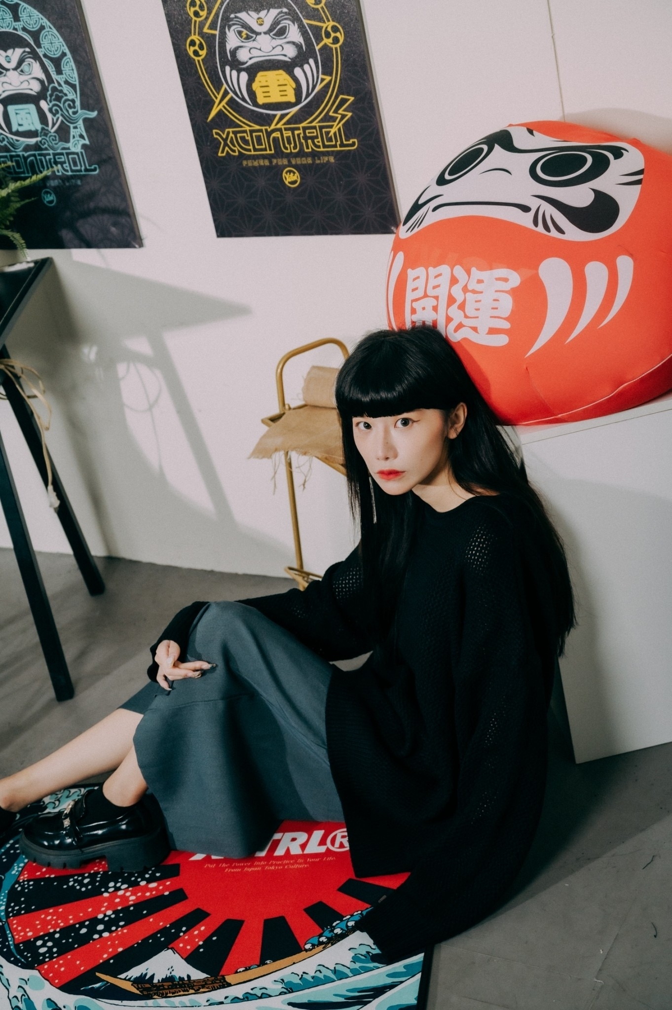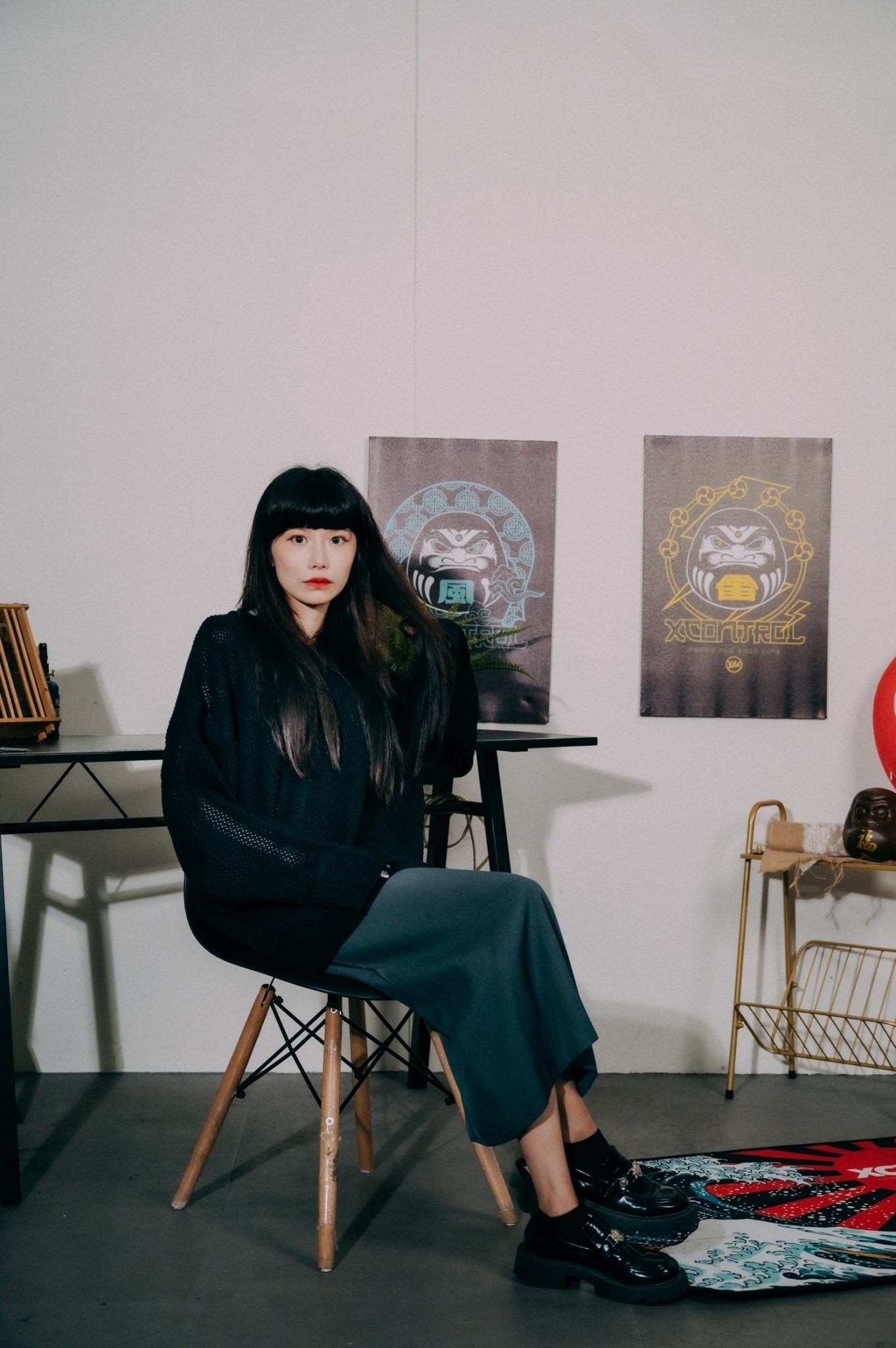 品名:XCTRL 編織洞洞落肩長袖毛衣-黑