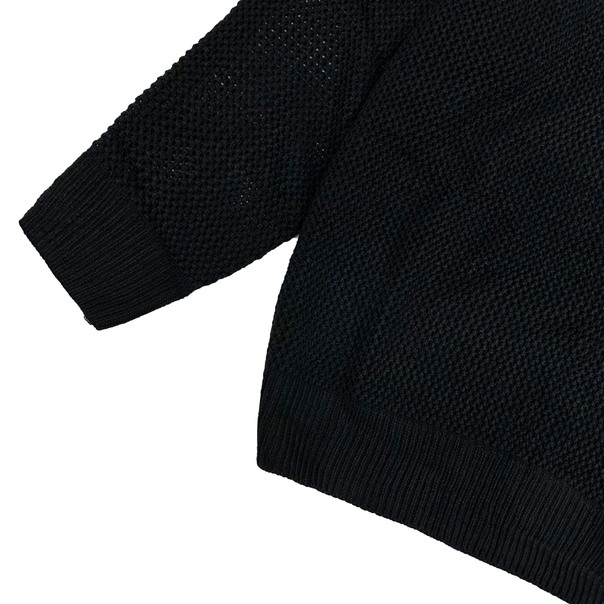 XCTRL 編織洞洞落肩長袖毛衣-黑