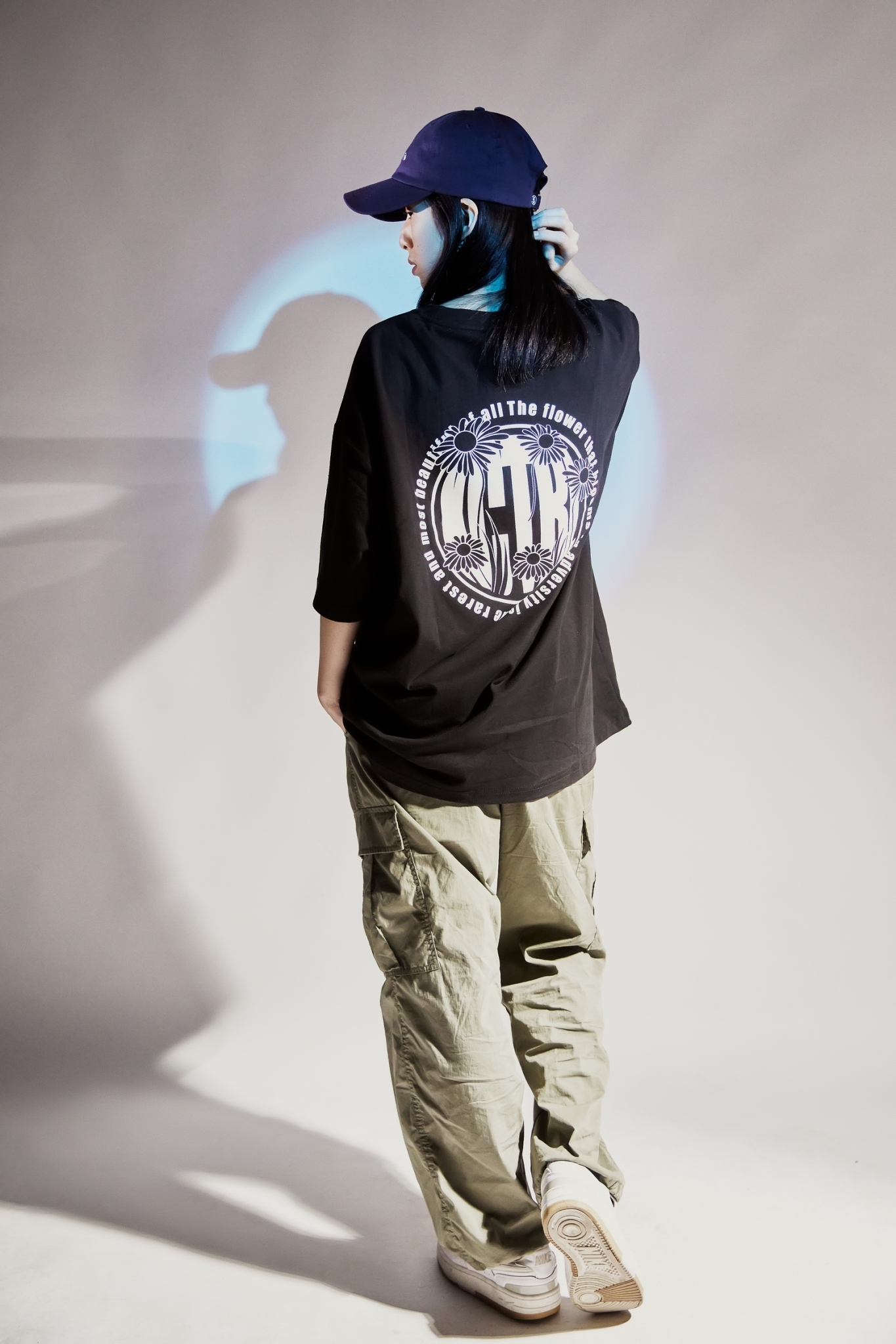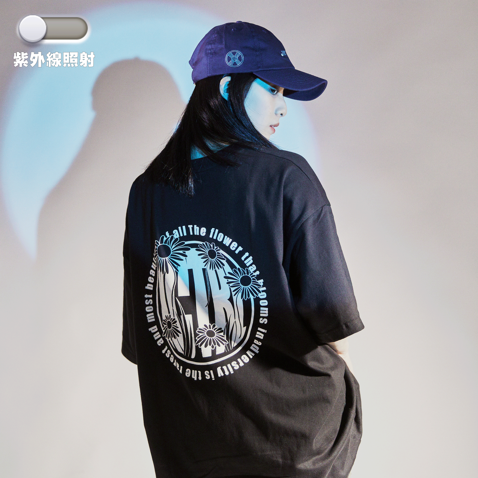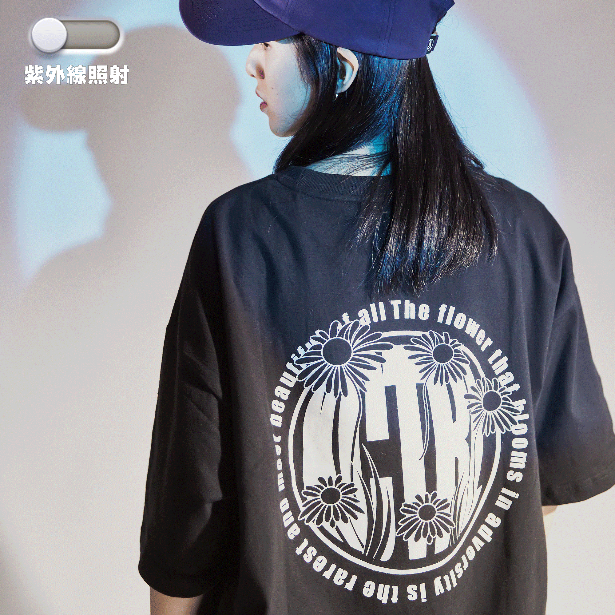 24 S/S  XCTRL 逆境綻放的花朵變色短T-黑