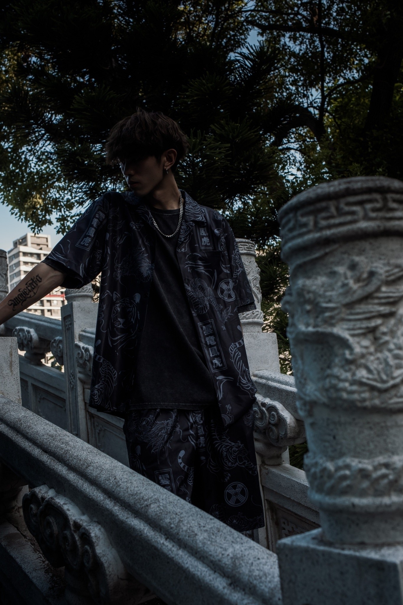 品名:XCTRL 23SS  雲龍風虎黑-短袖襯衫