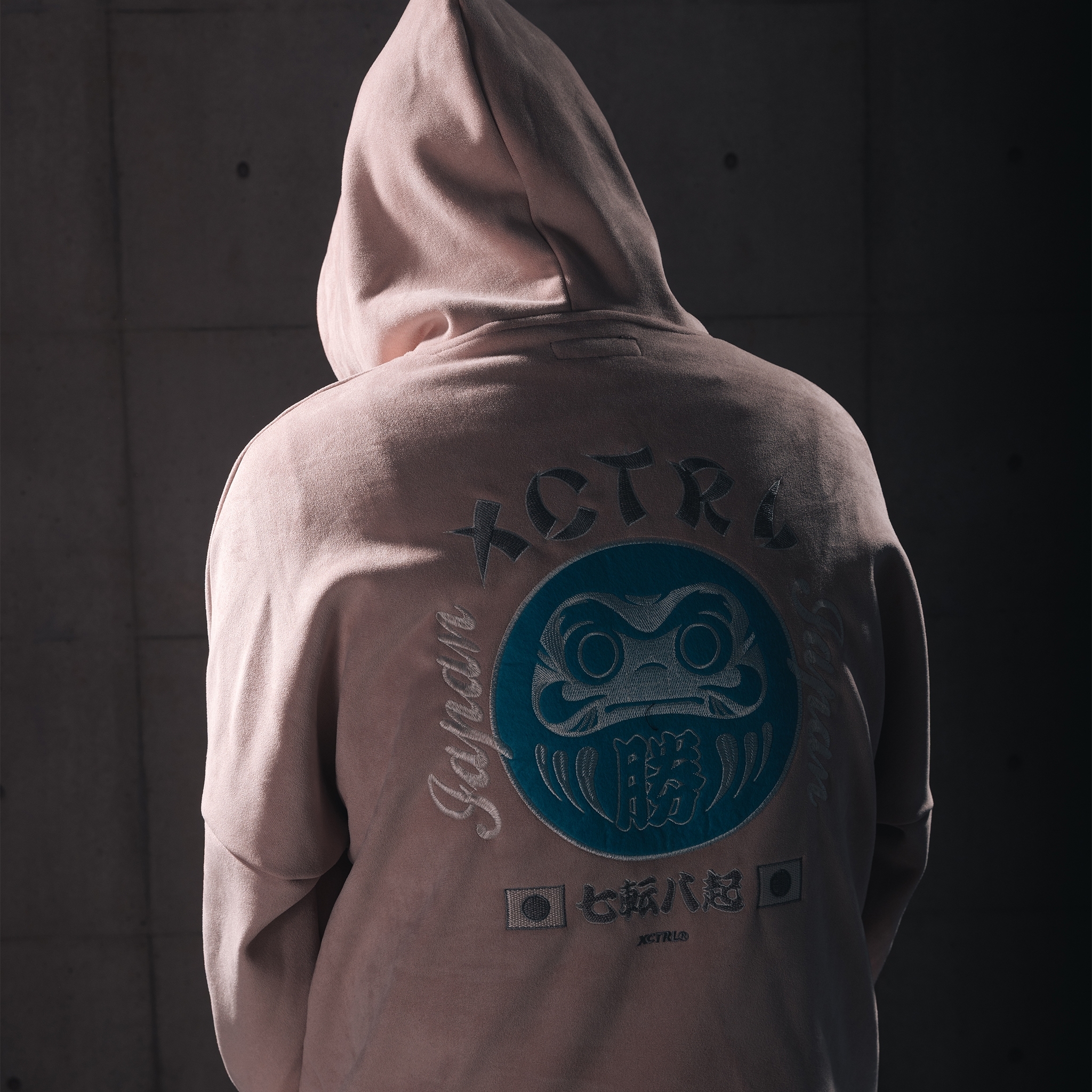 XCTRL 電繡達摩麂皮絨寬版帽T-粉