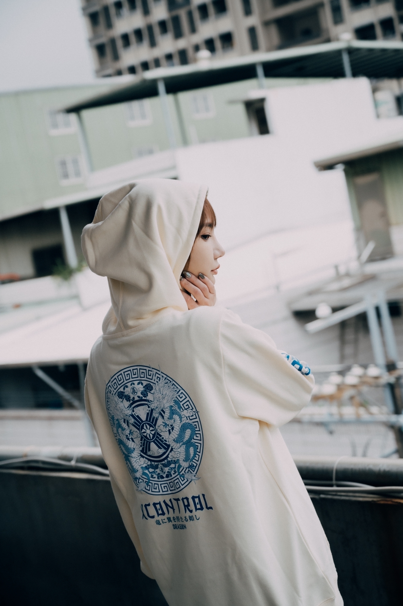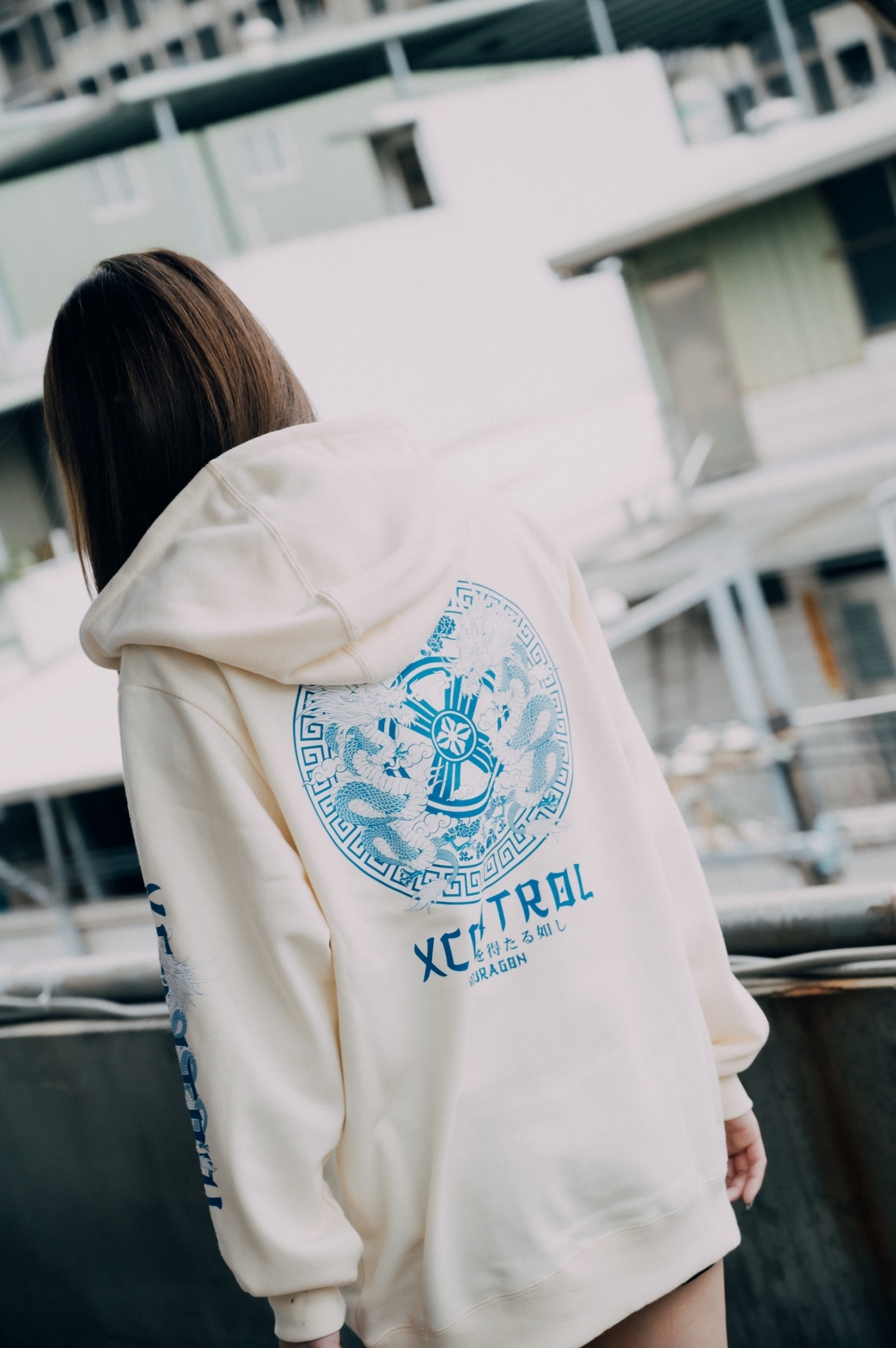 XCTRL 青花瓷龍帽T-奶油黃