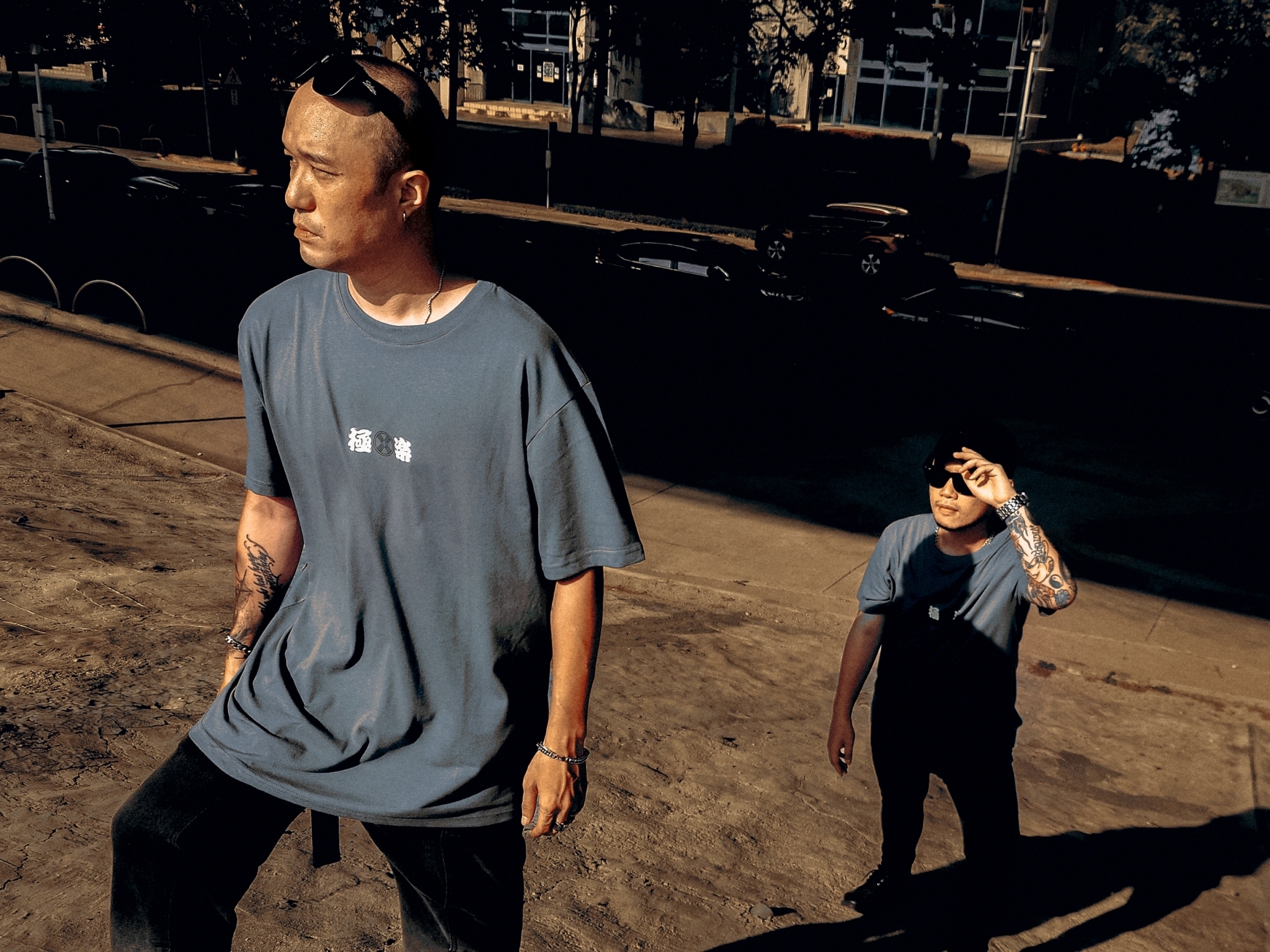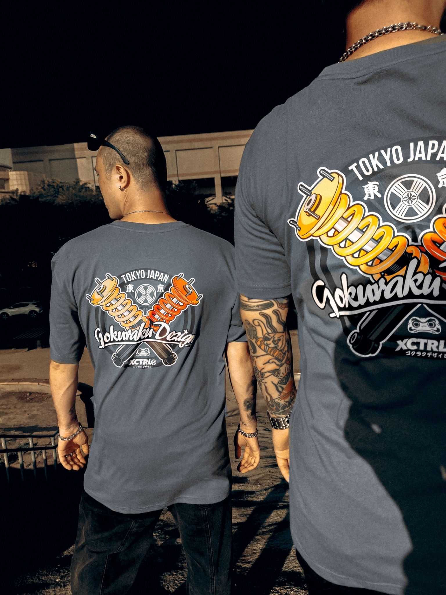 XCTRL x Gokuraku 極楽聯名雙色避震短T-藍灰