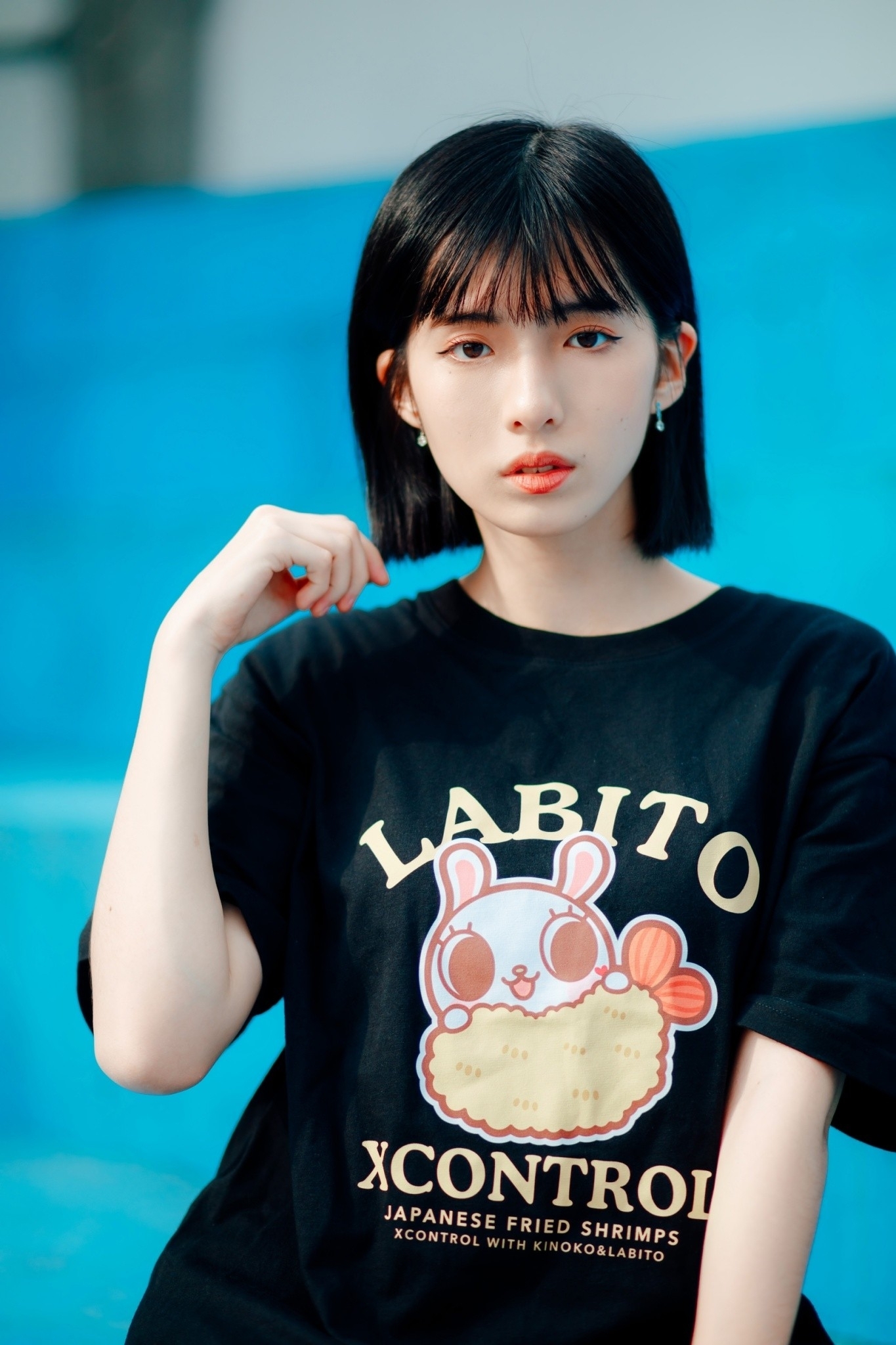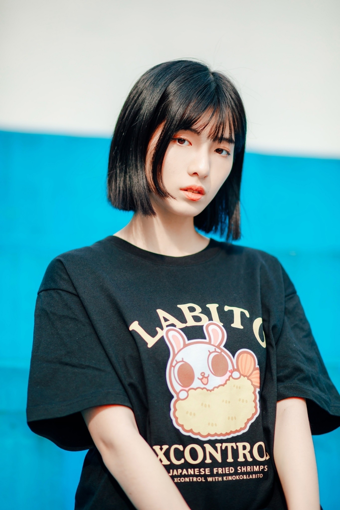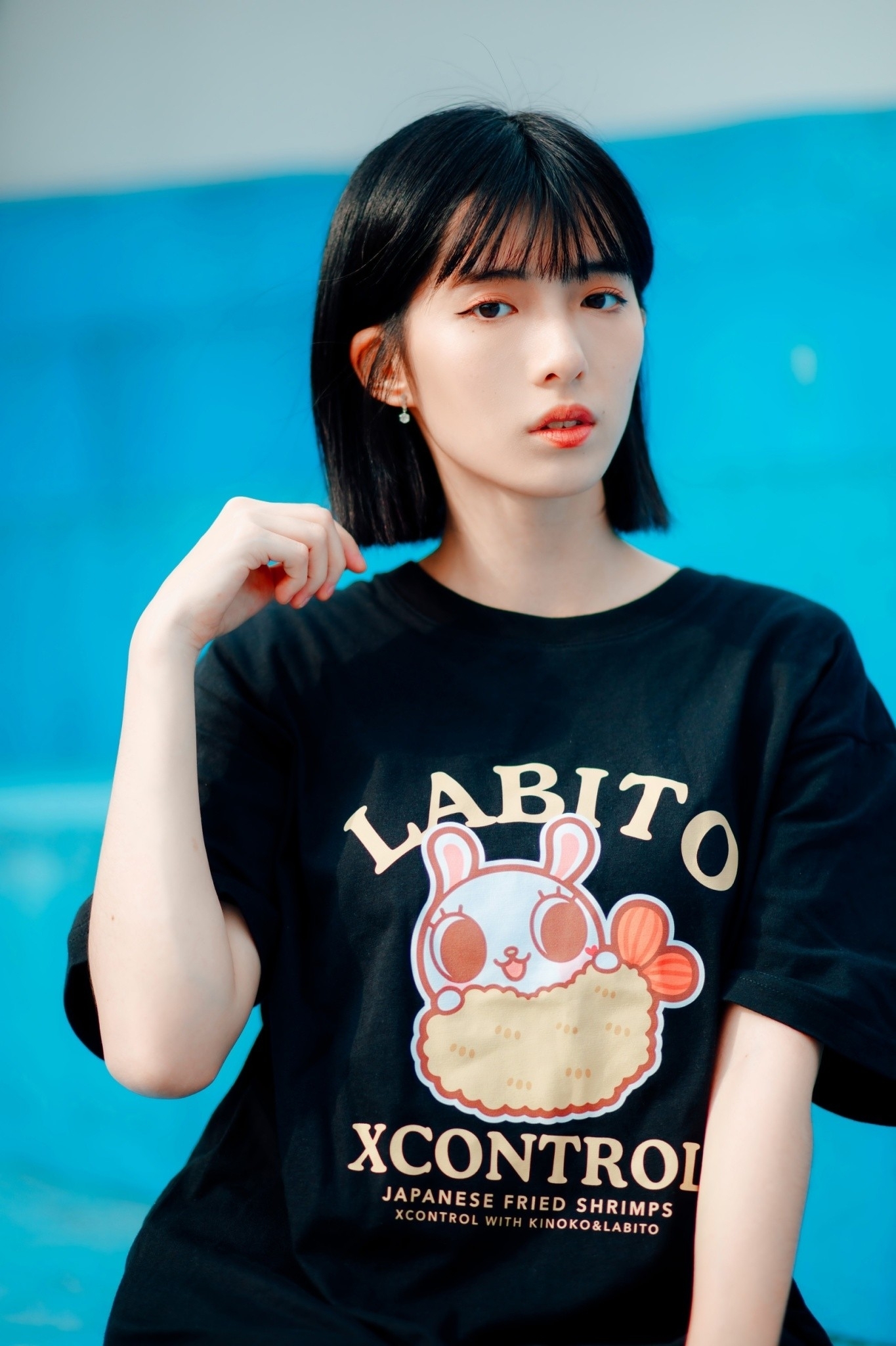 XCTRLx香菇妹聯名炸蝦短T-黑