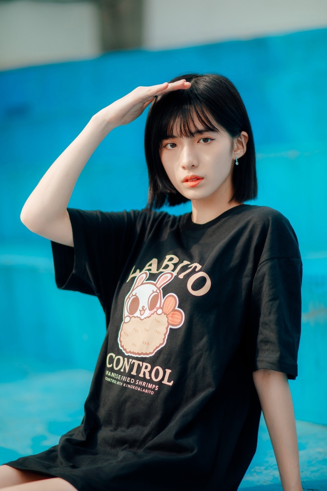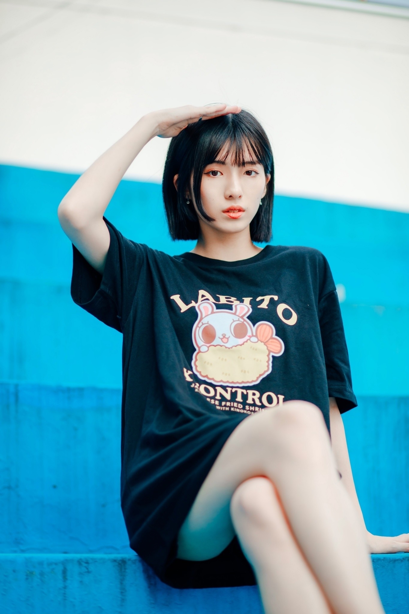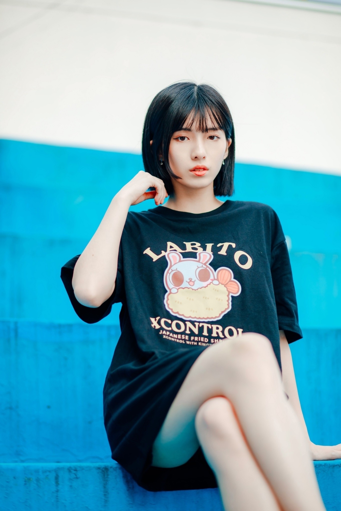 XCTRLx香菇妹聯名炸蝦短T-黑